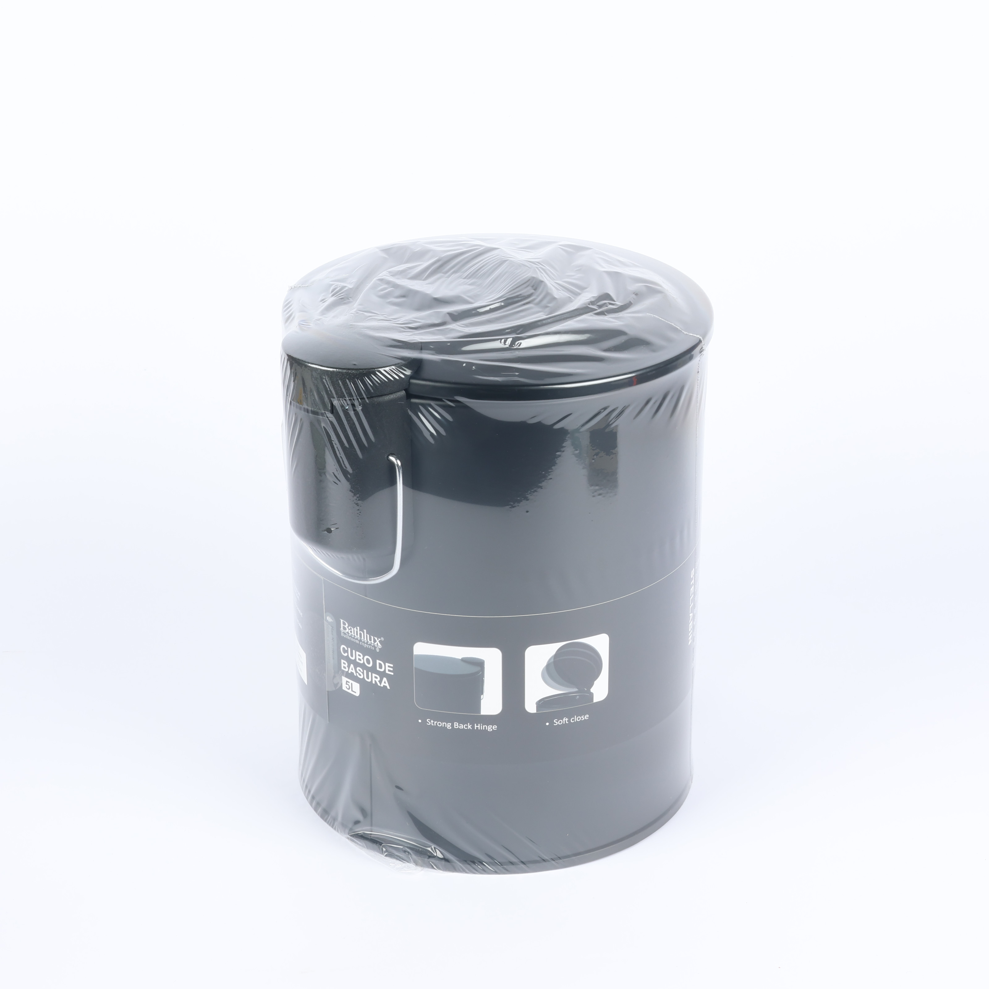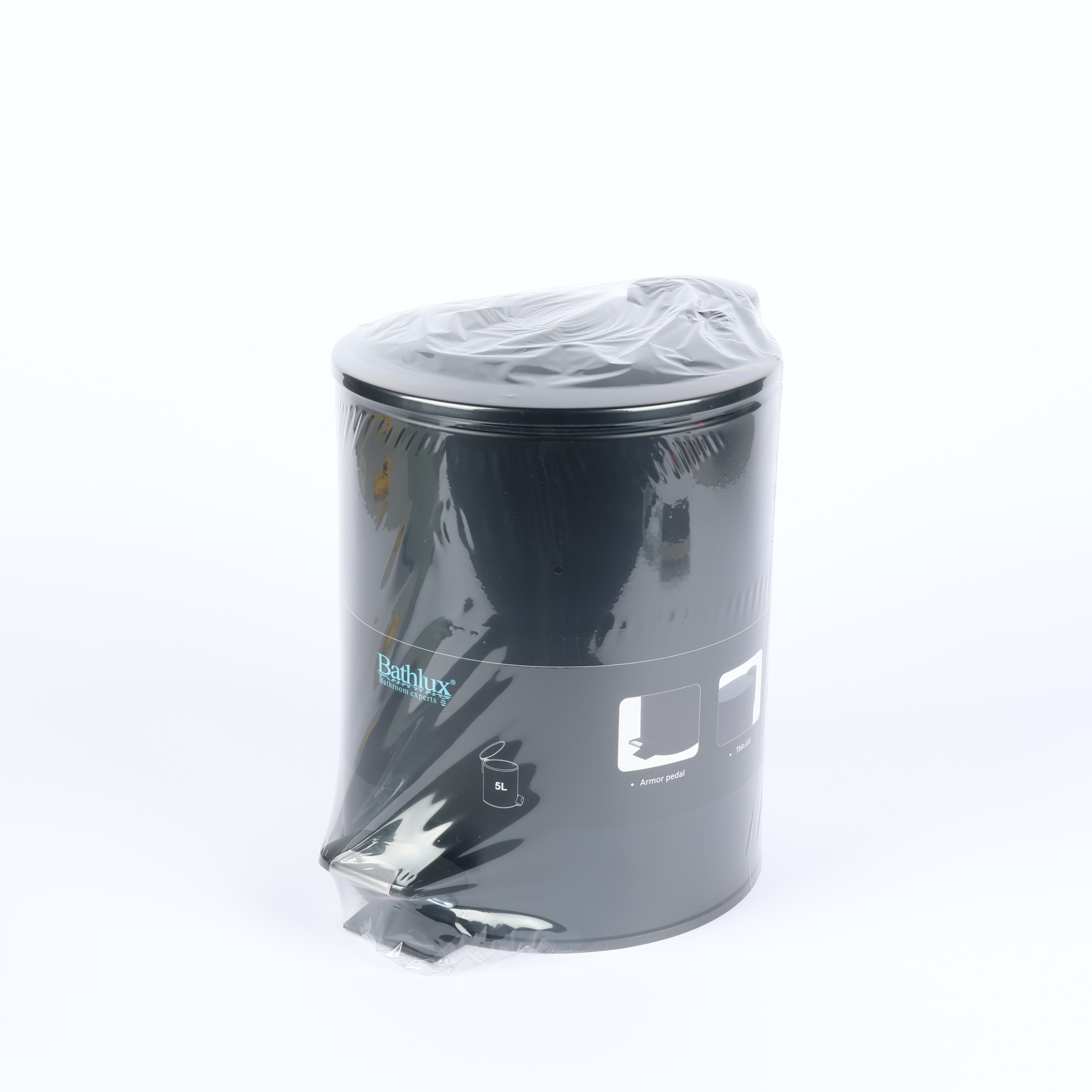 Slim round metal trash can, 5L, black
