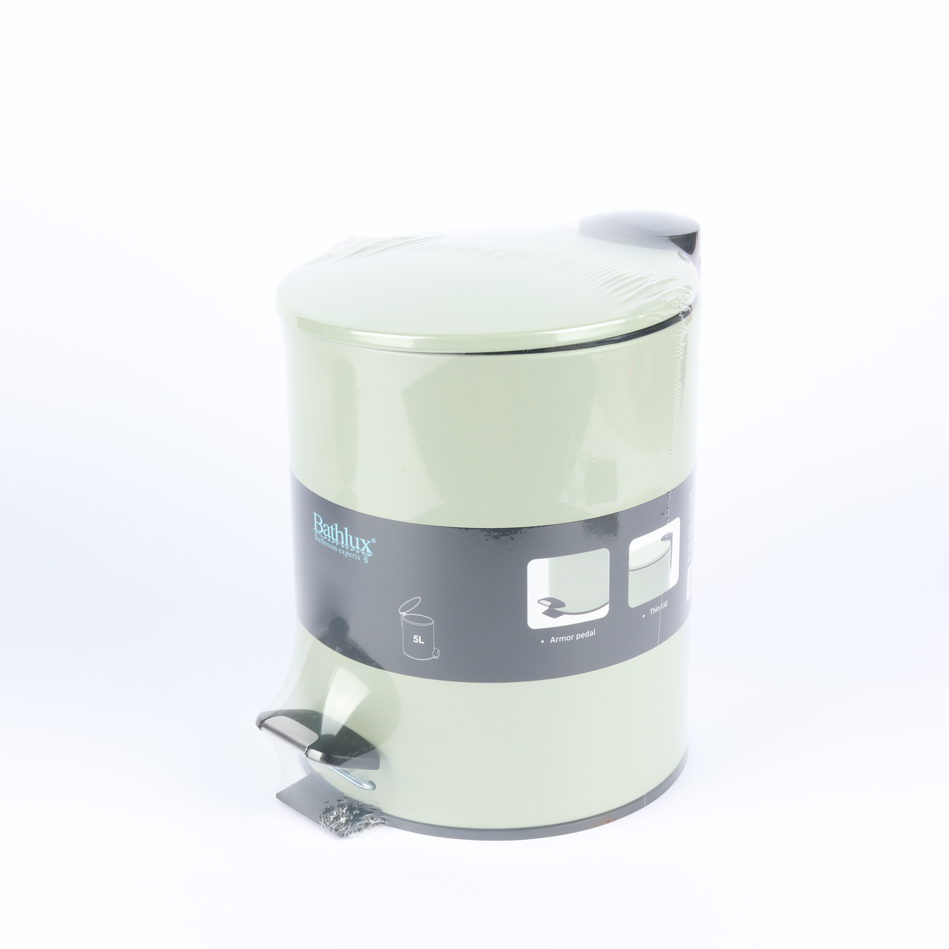 Slim round metal trash can, 5L, green