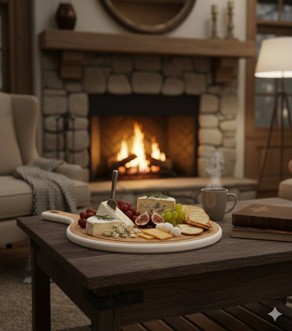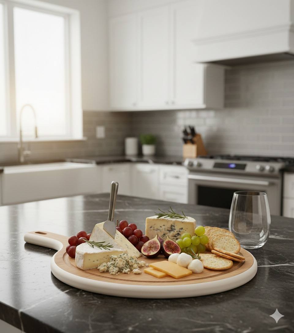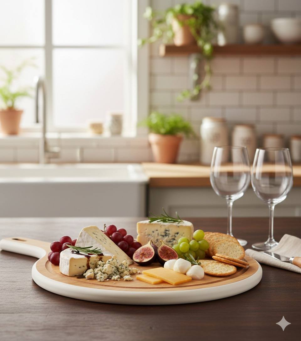 Small Round Wooden Board Tissy and Jessie with Carved Edges, Code SK-9263WHITE