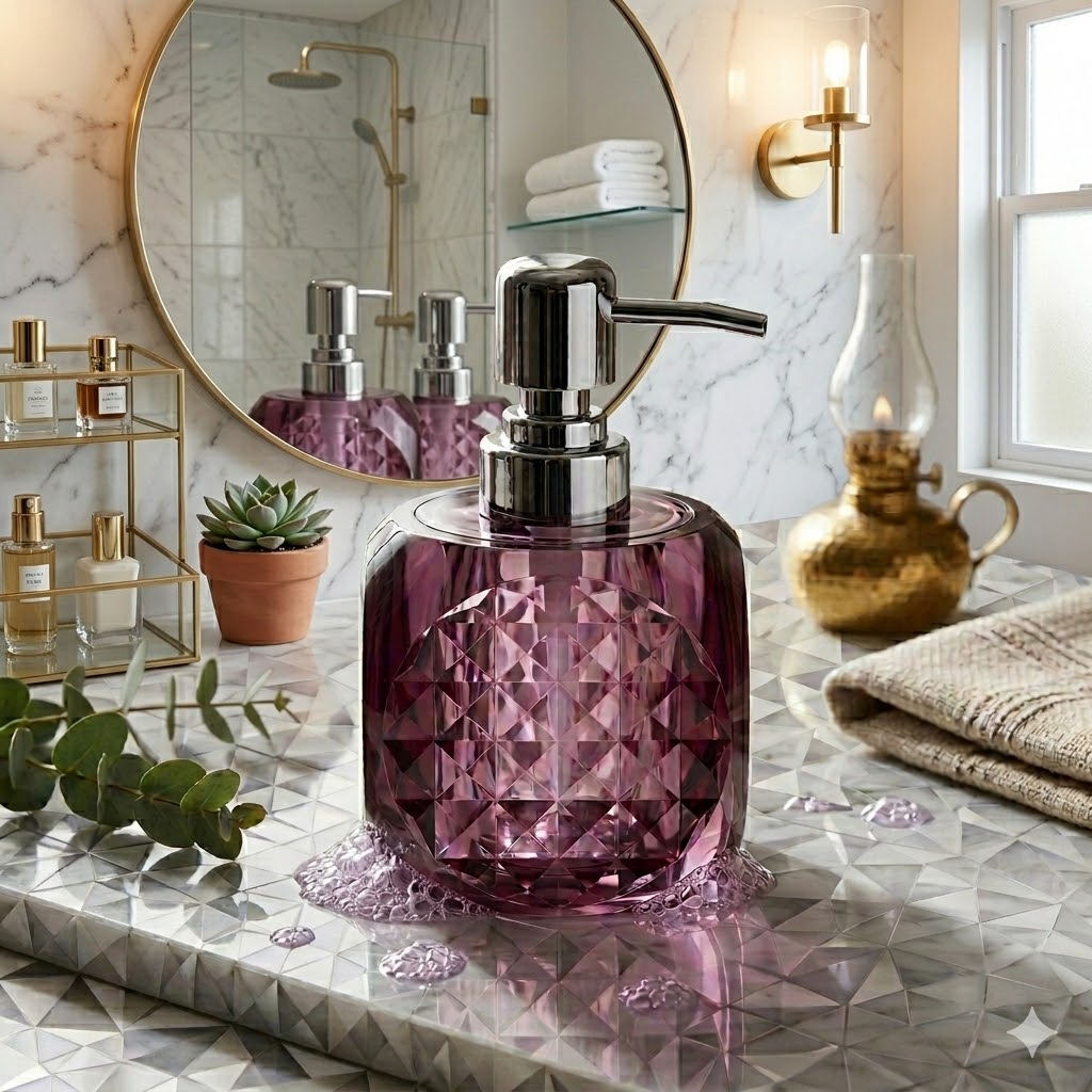 Soap Dispenser Luxury Cut 200ml Purple With Silver Pump 6827
