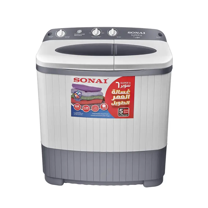 SONAI Washing Machine Half Automatic 6 kg Twin Tub – White Grey - MAR-266