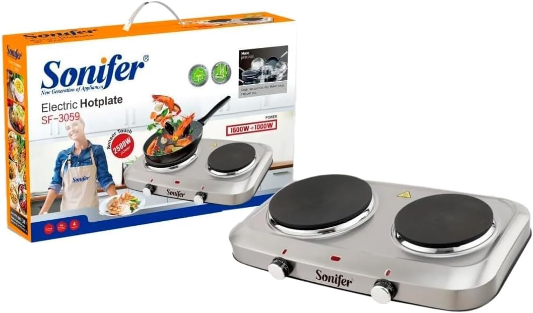 Sonifer Electric Burner 2 Hob, 1500W+1000W, Stainless Steel SF-3059