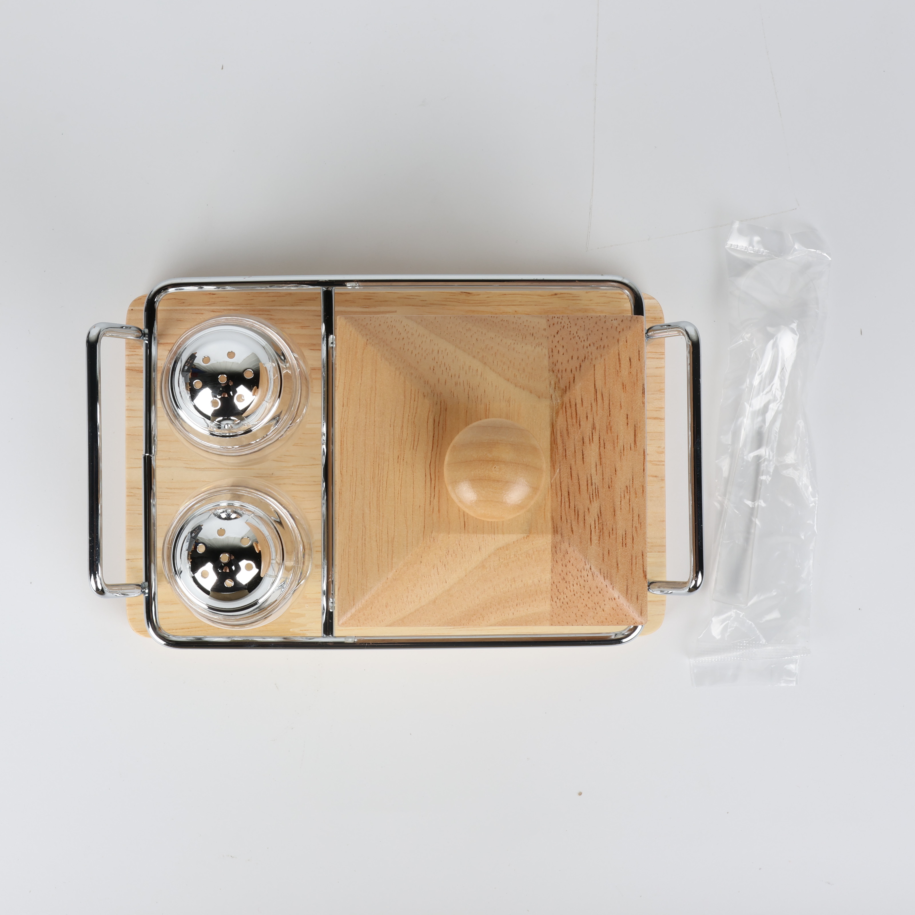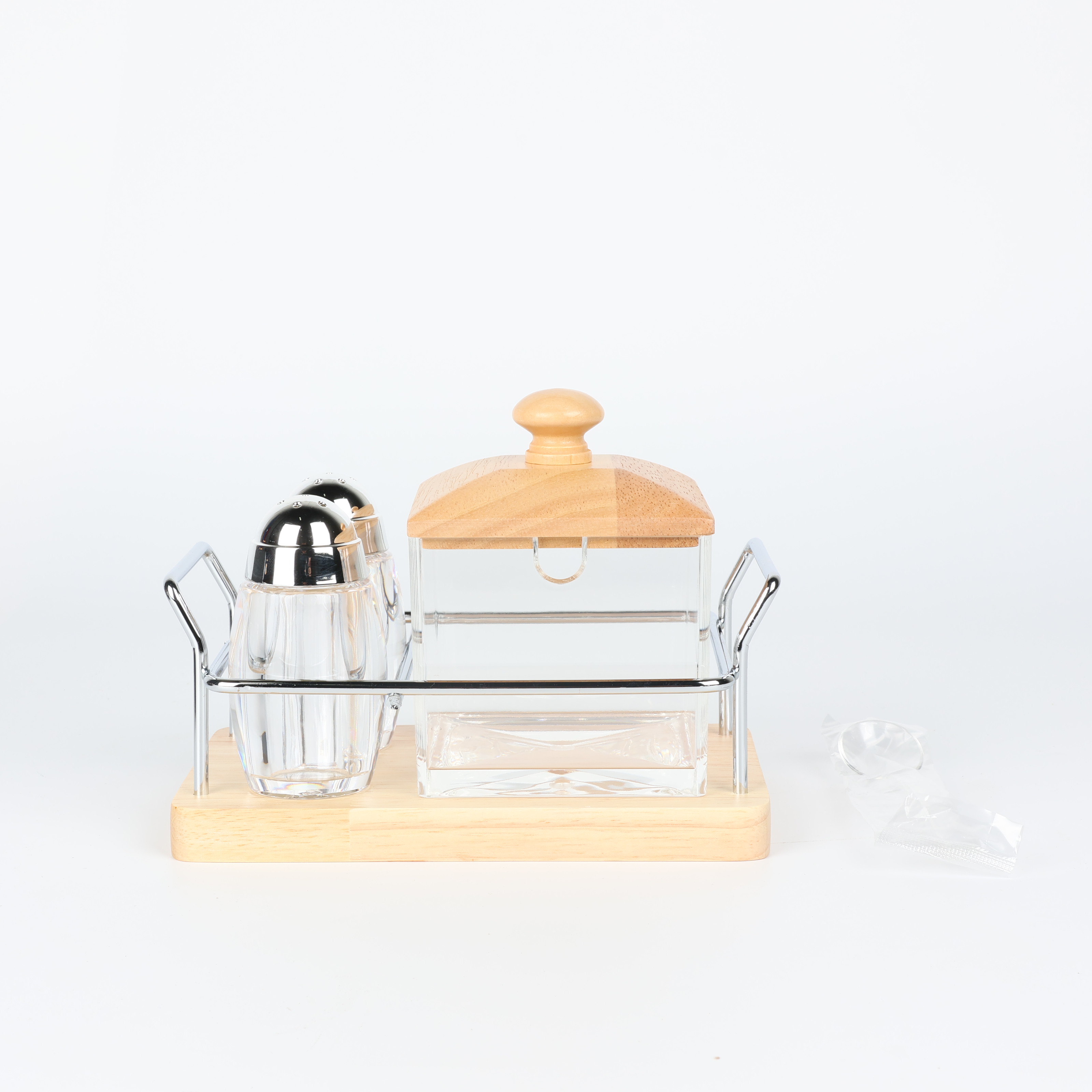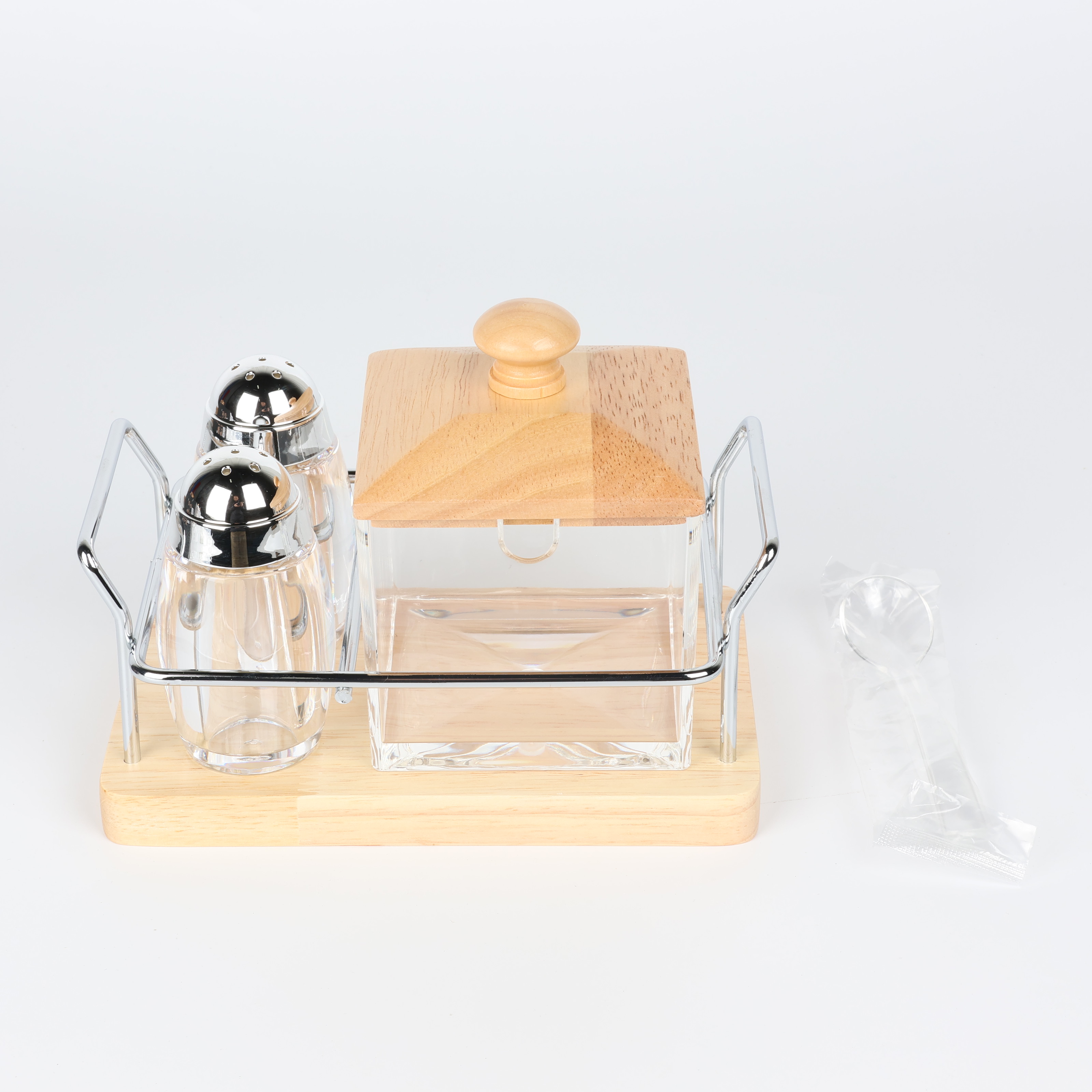 Spice Set Square 3-Piece with Wooden Lids and Wooden Holder - F3739