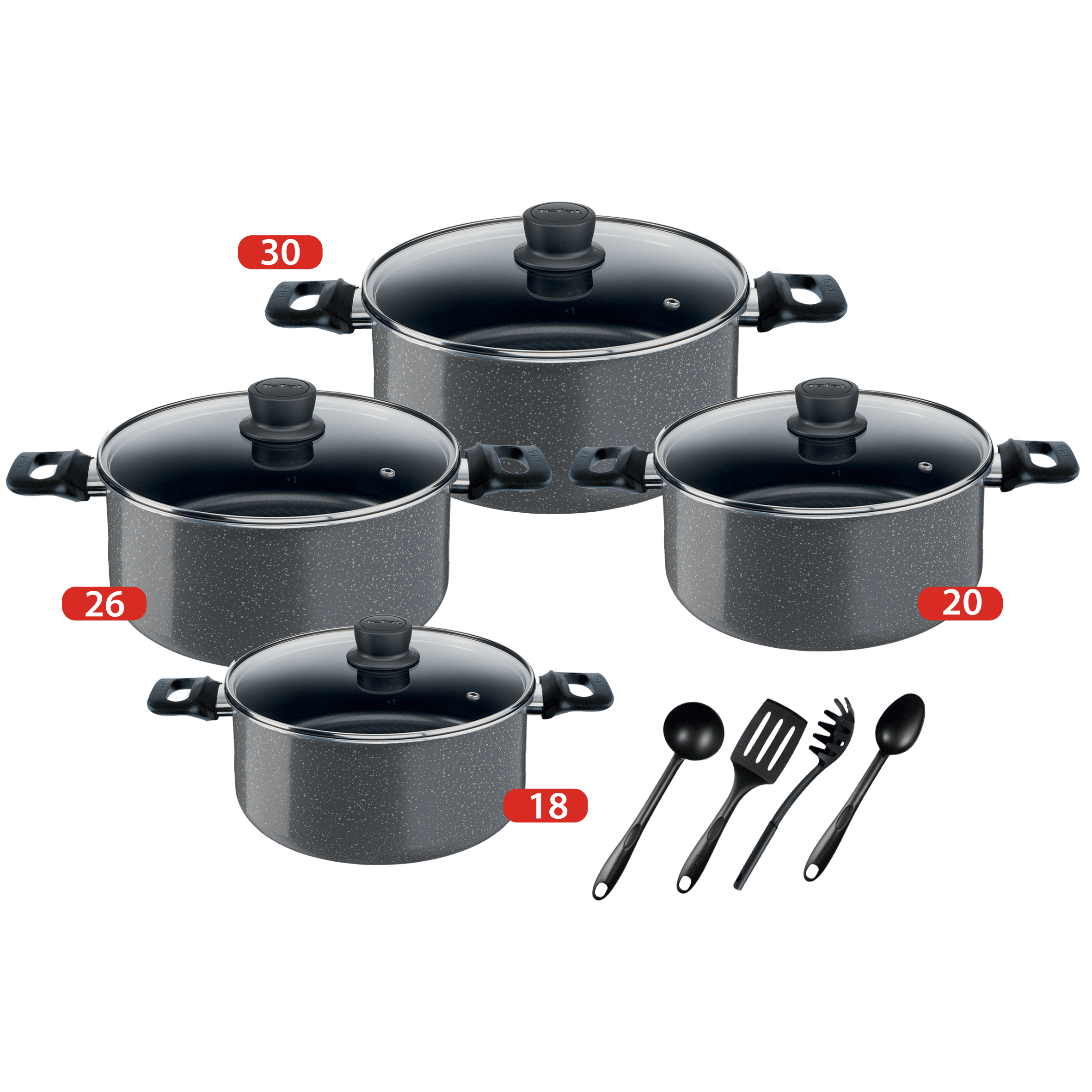 Tefal Natural Cook (Granite) 4‑pot set with glass lid