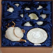 Tea and cake set, 24 pieces, Thai made, Elegant brand, light beige simple with elegant golden touches on edges.