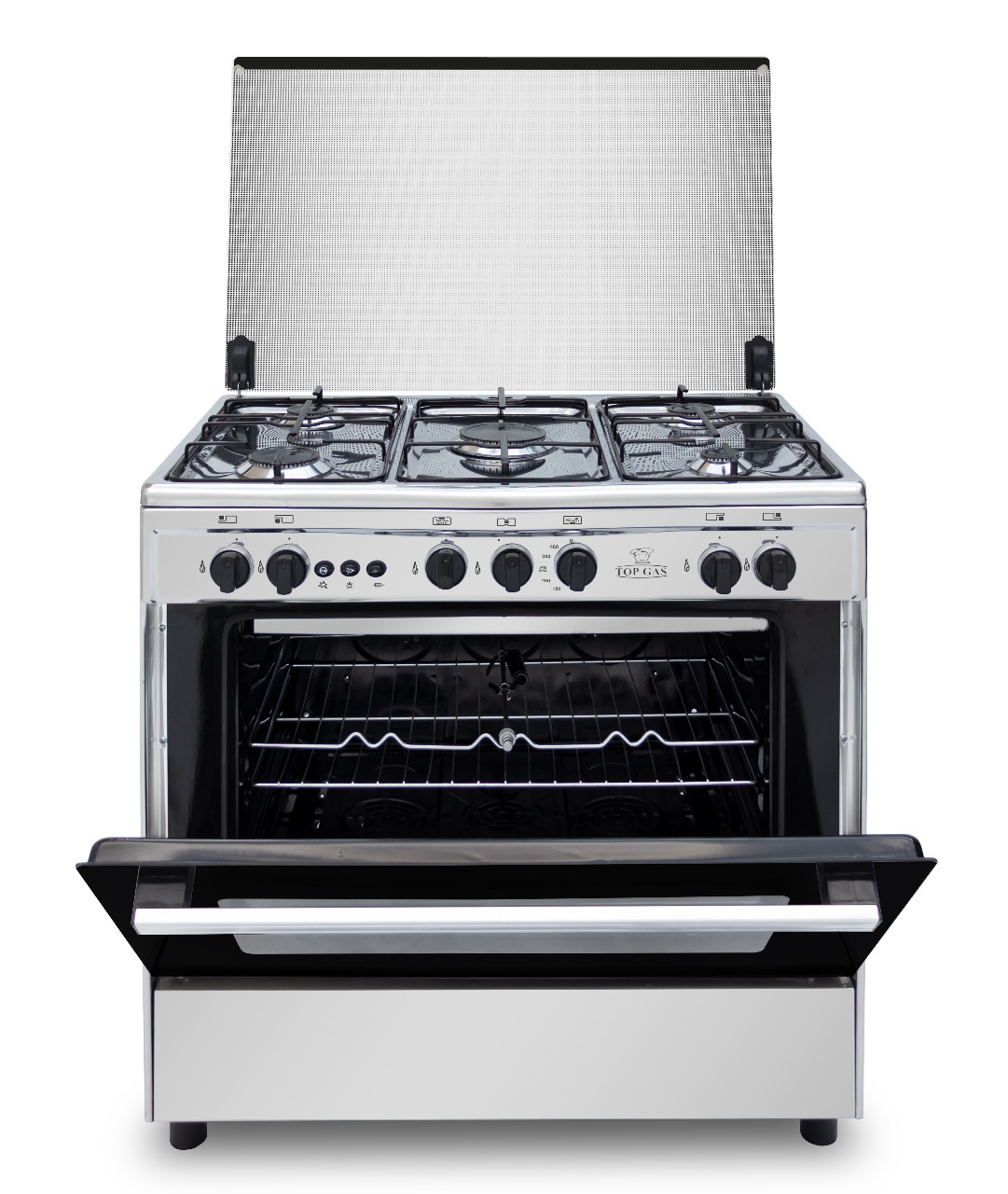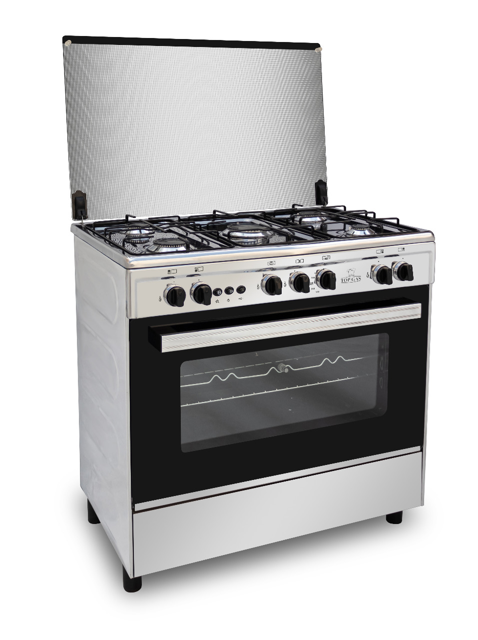 Top Gas Cooker, 5 Burners, 60*80, Standard Stainless Steel, Iron Holders - TGS802