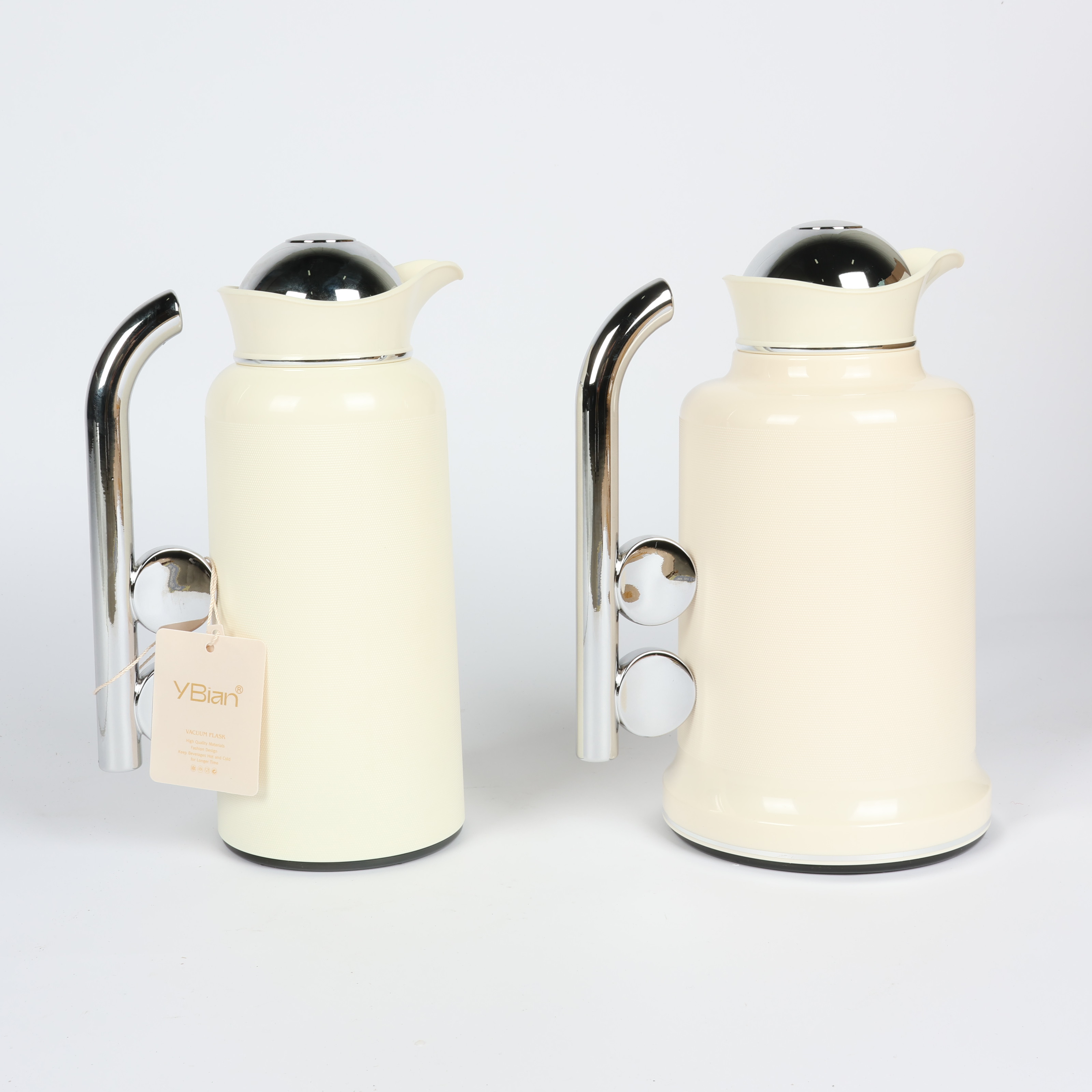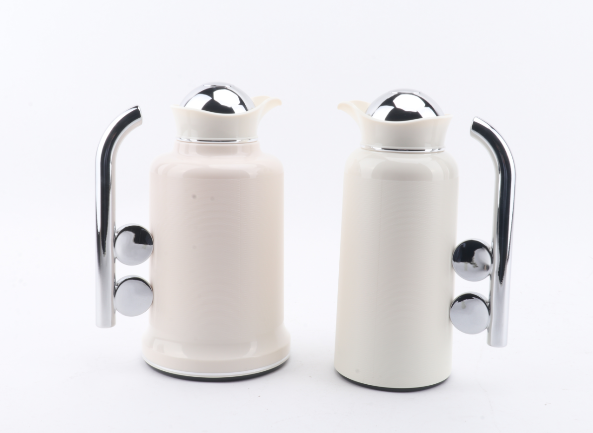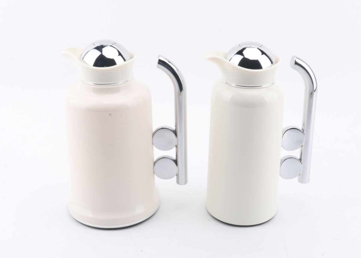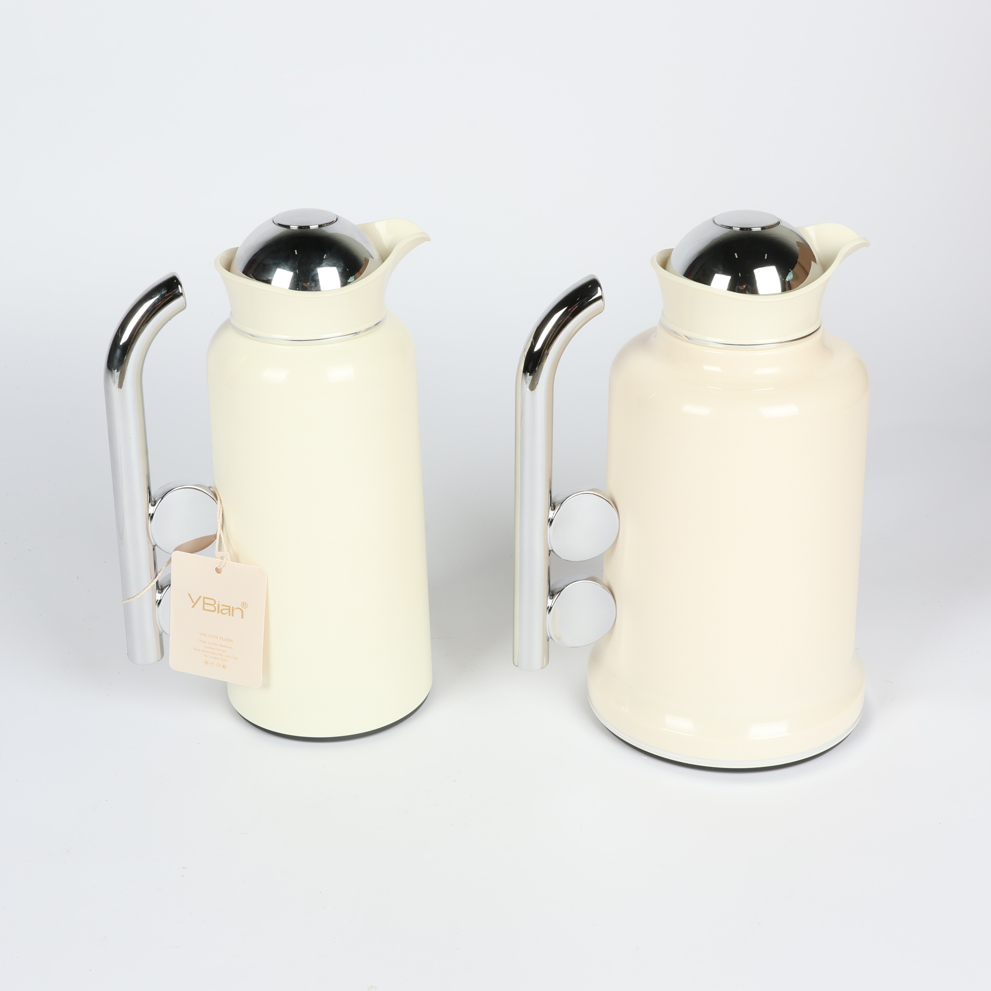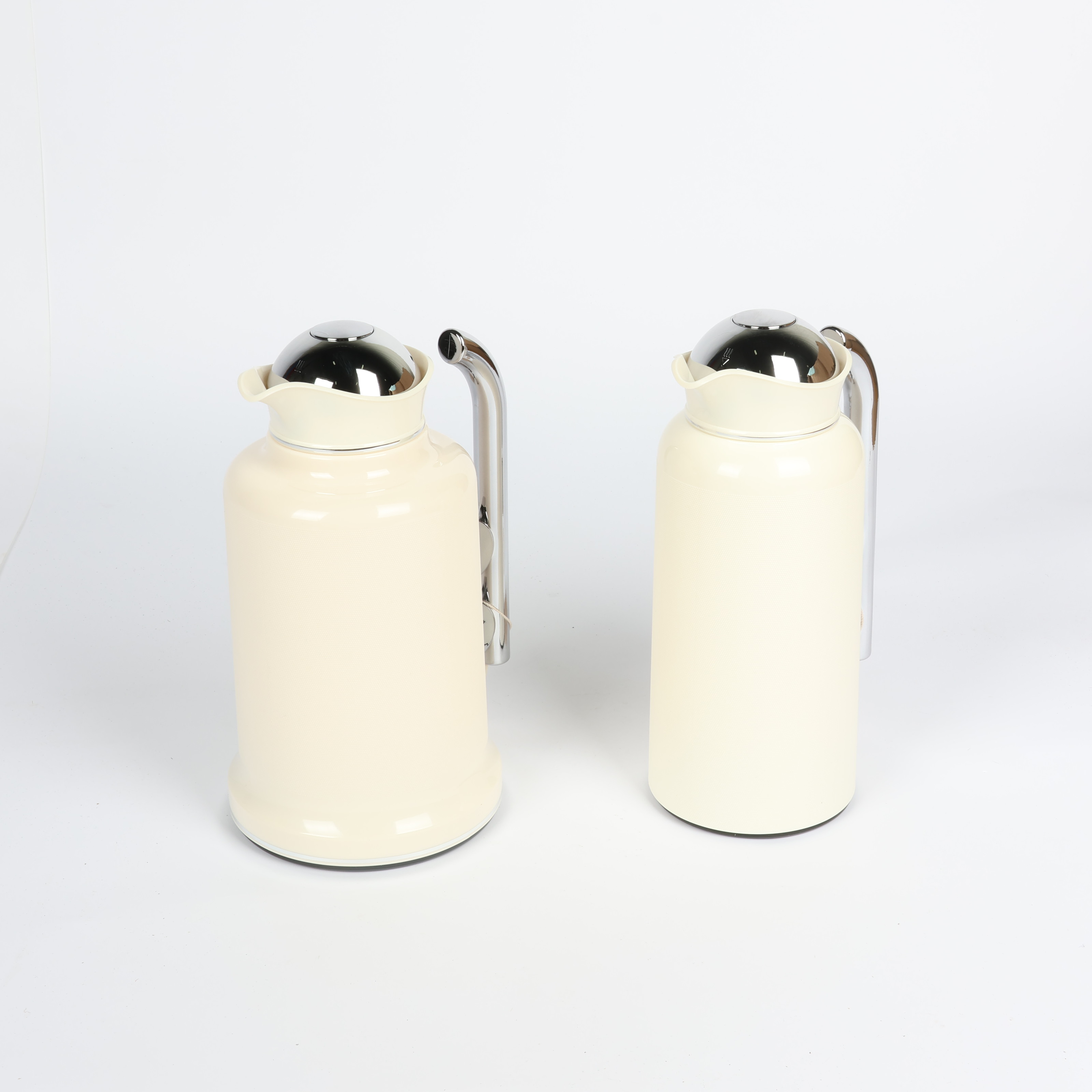 Penguin Thermos Flask Set – 2 Pieces (1L + 0.7L), Matte Cream Color with Silver Handle