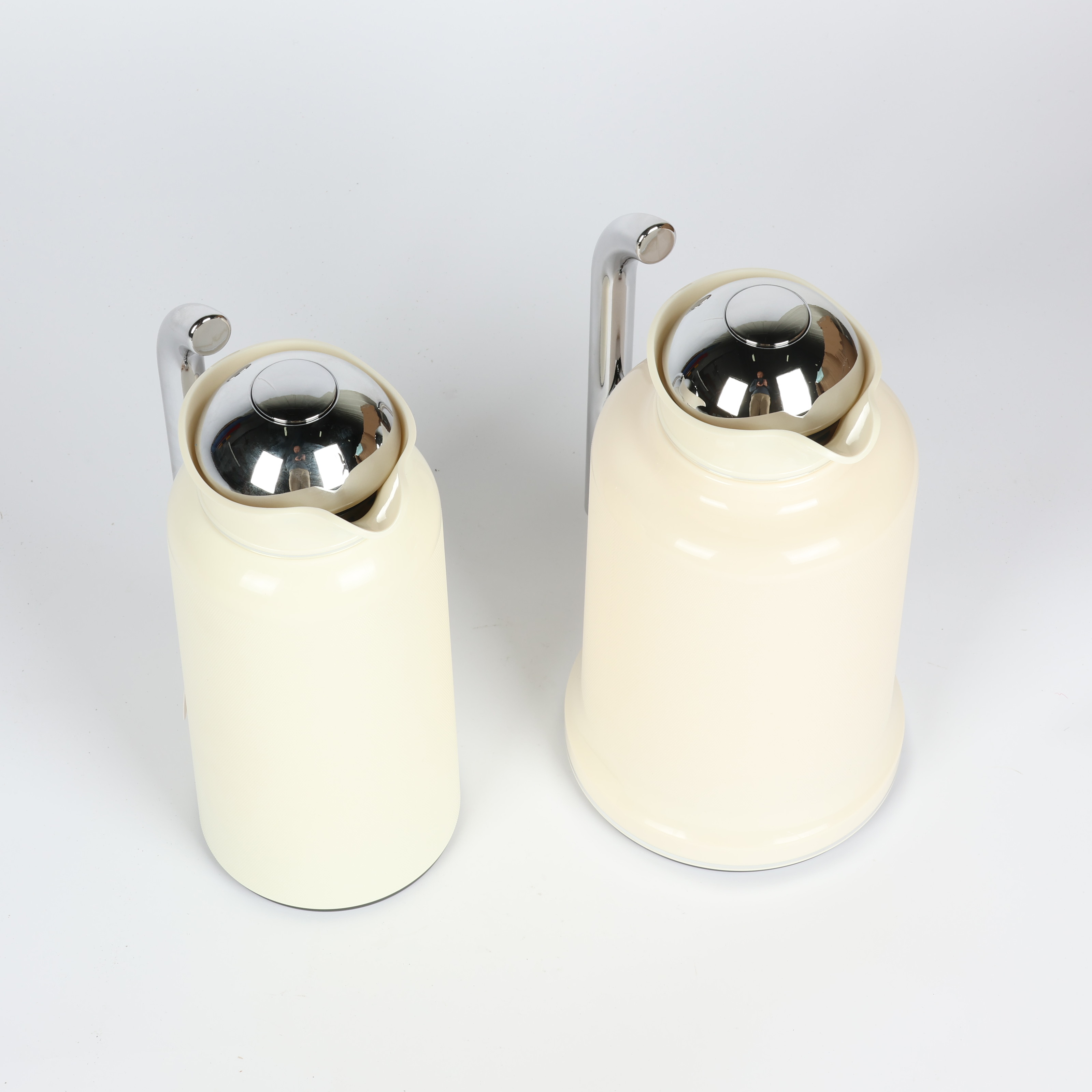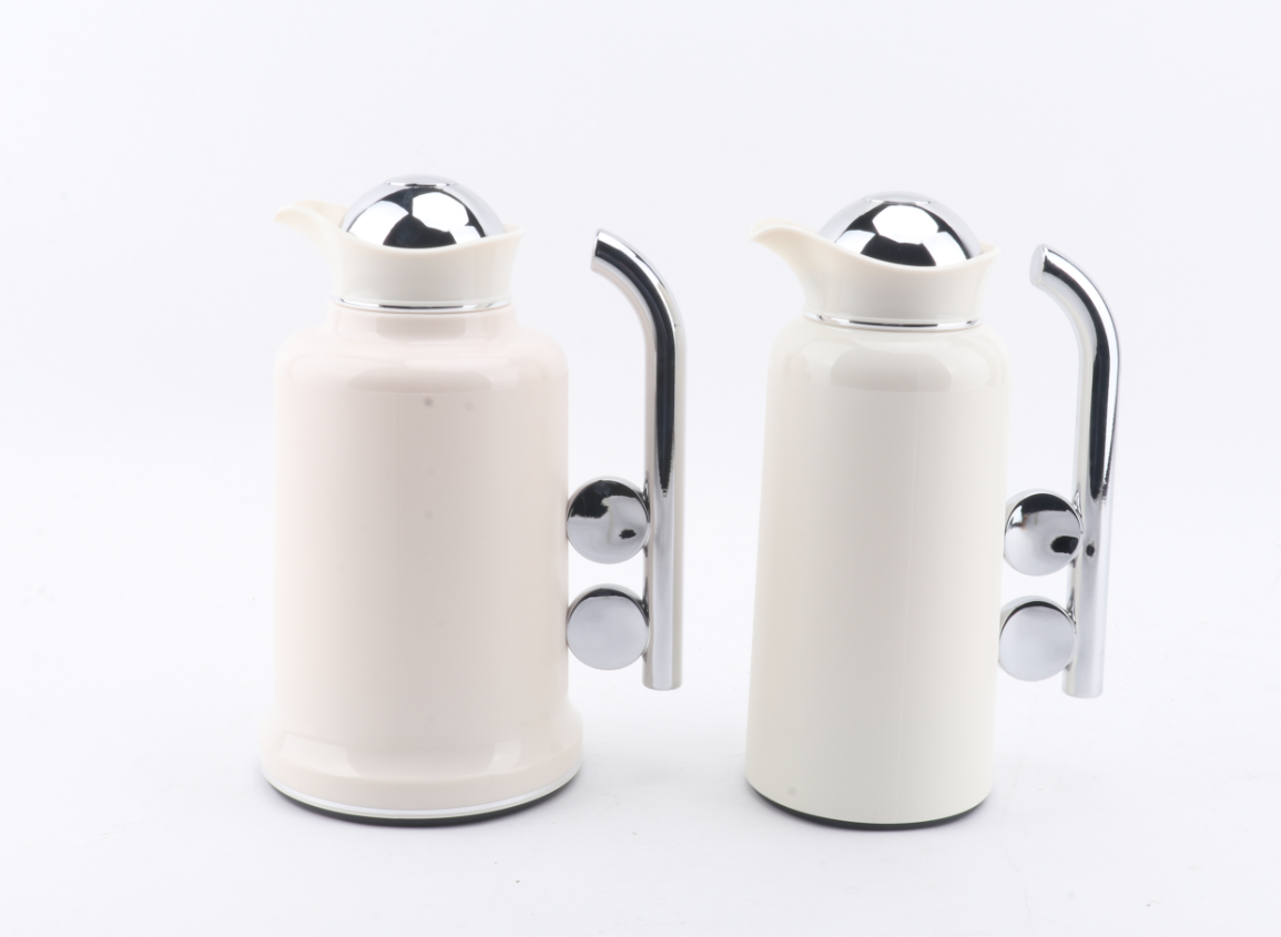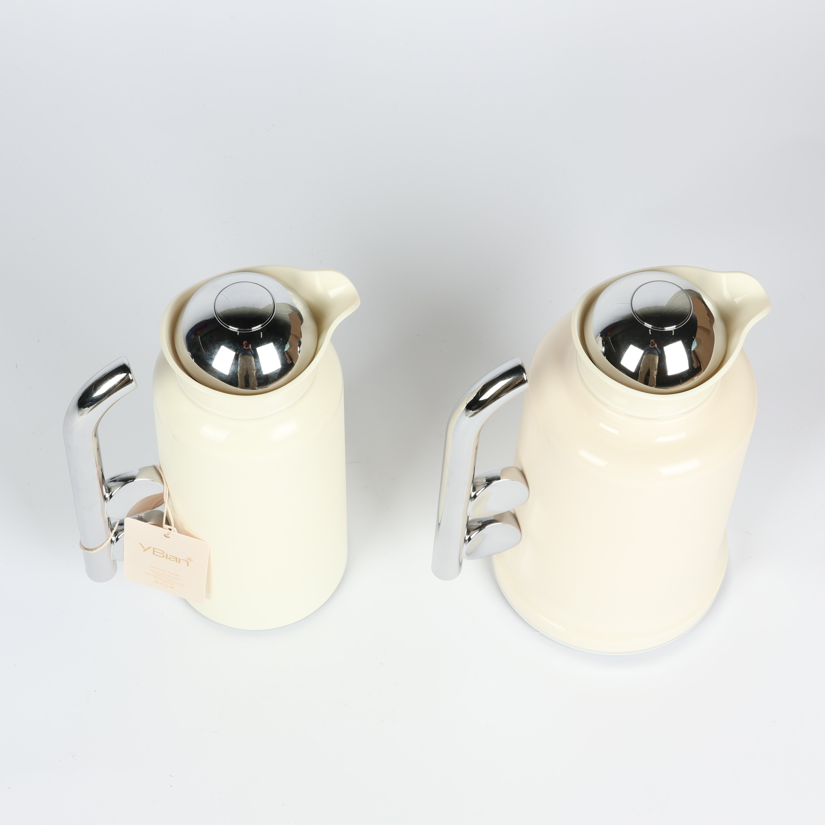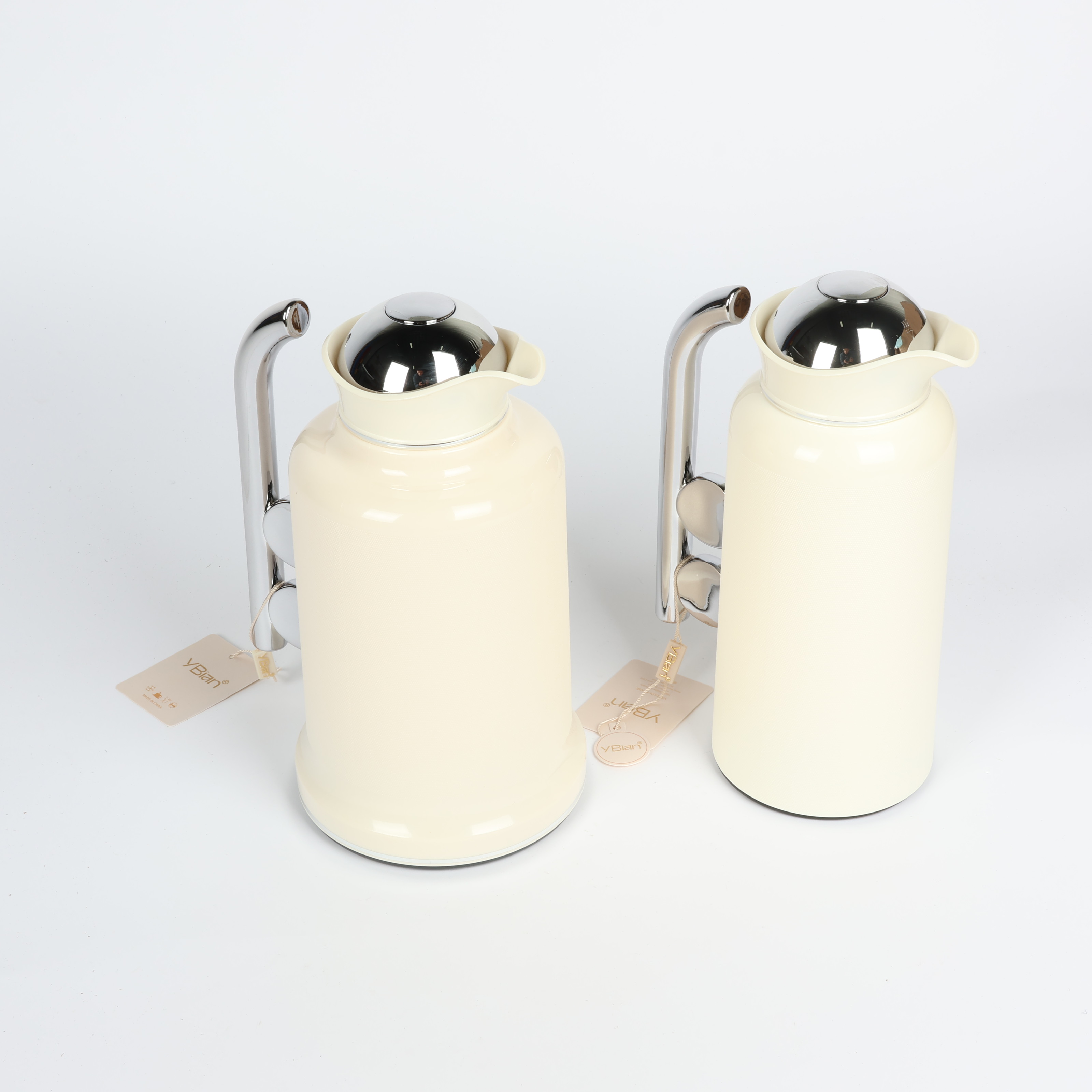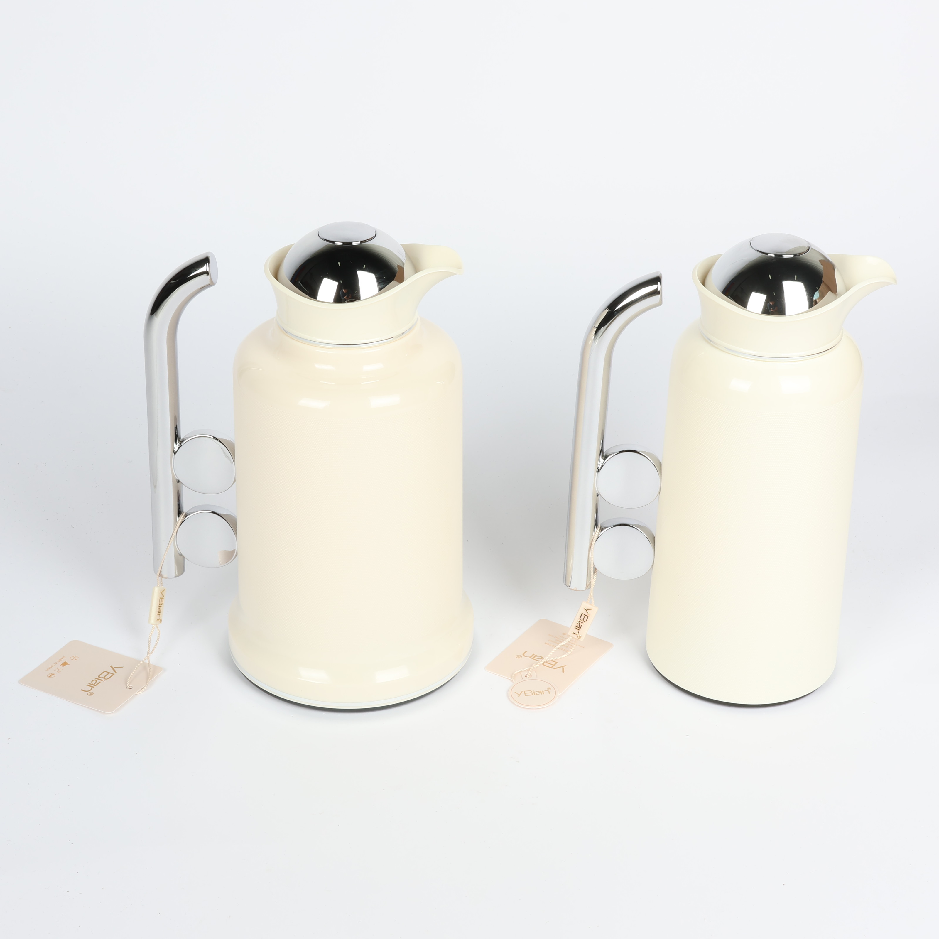 Penguin Thermos Flask Set – 2 Pieces (1L + 0.7L), Matte Cream Color with Silver Handle