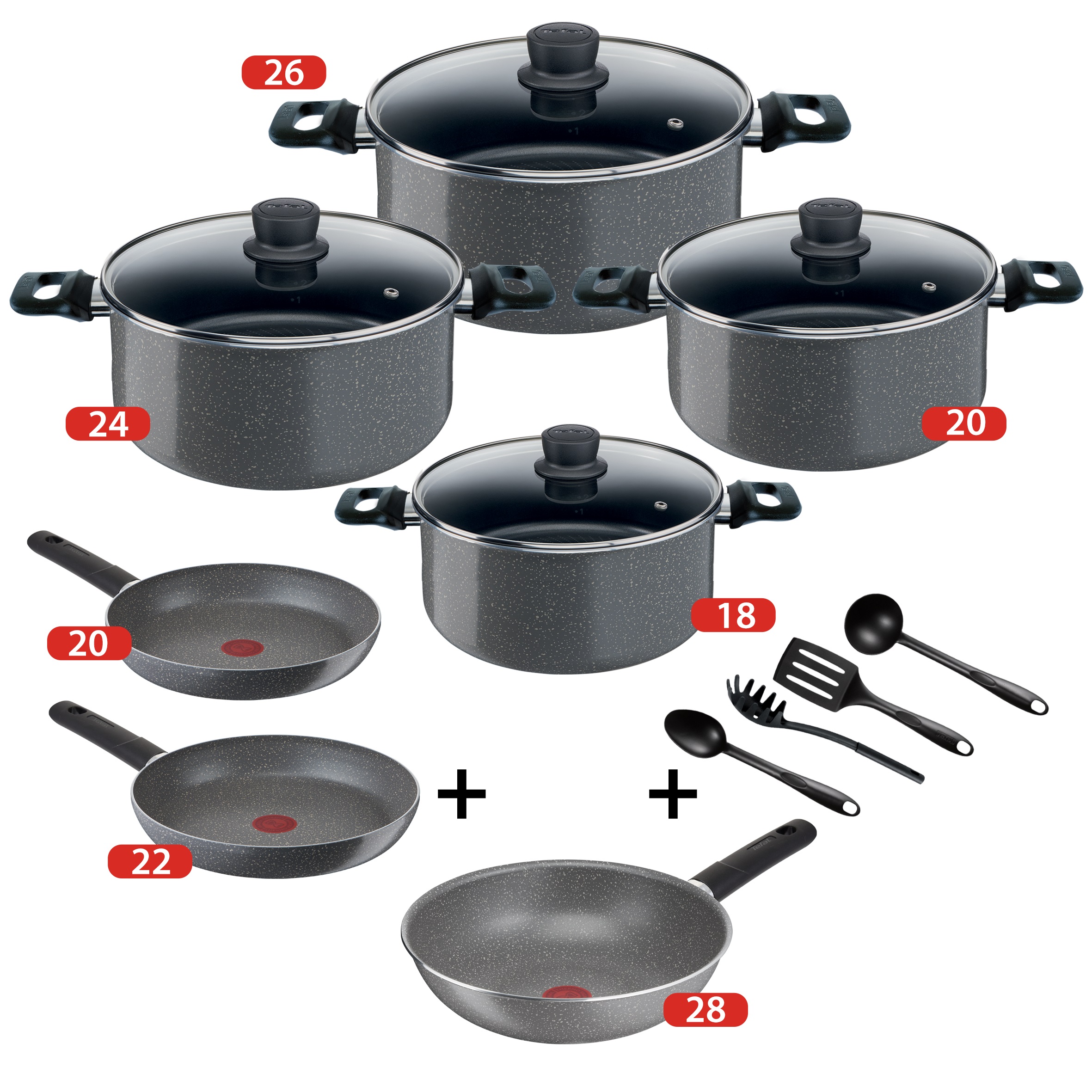 Tefal Natural Cook 15‑piece set (pots 18‑20‑24‑26), pans 20‑22, wok 28