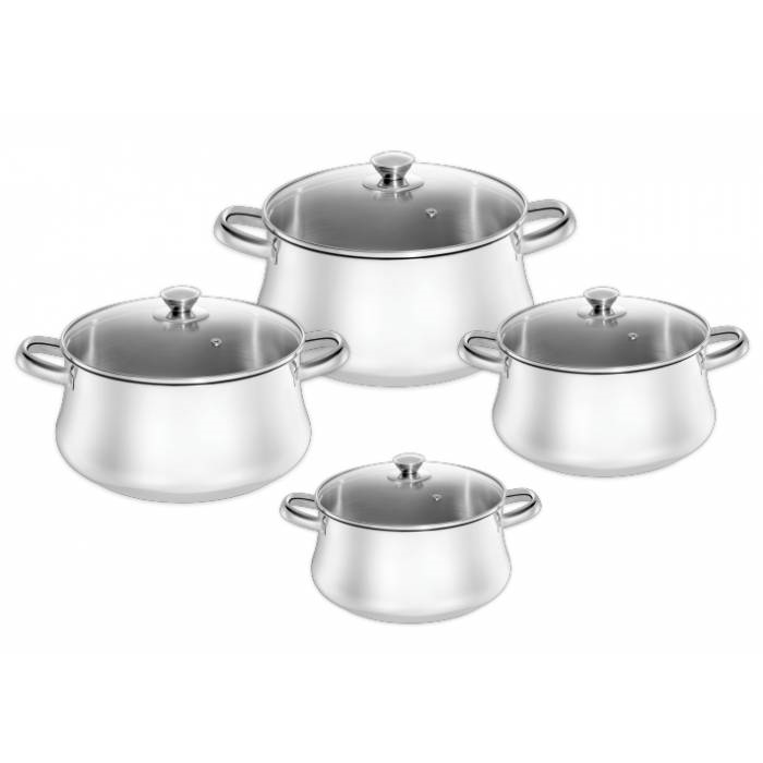 8-Piece Stainless Steel Pot Set with Glass Lid (16-18-24-28 cm)