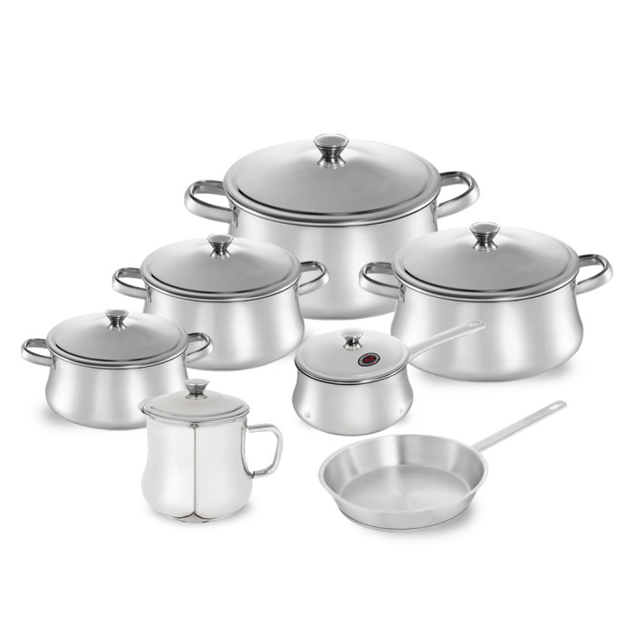 Zahran Stainless Steel Cookware Set, 13 Pieces, Pots Size (18 - 20 - 24 - 28) + Frying Pan Size (24) + Casserole Size (16) + Milk Pot Size (12)