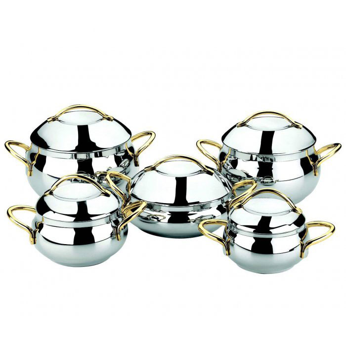 Bonera Stainless Steel Turkish Cookware Set, 10 Pieces - Silver Gold - 16003071