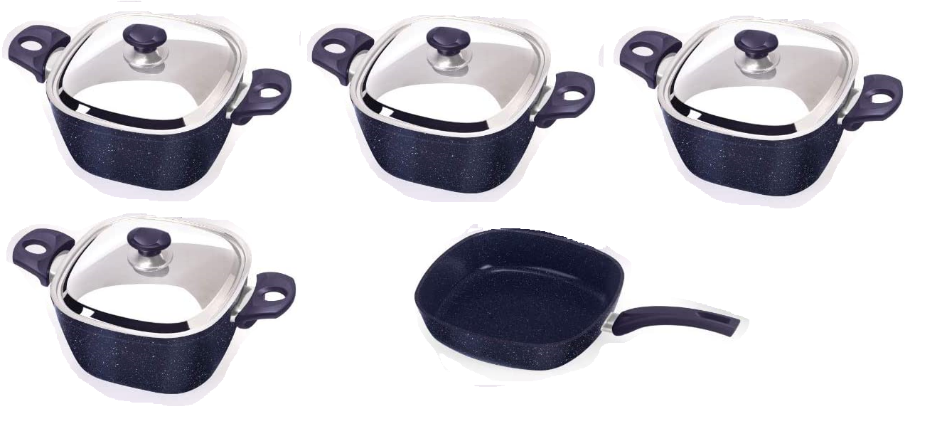 Top Chef Granite 9-Piece Square Set (4 Pots 18-20-24-28 + Skillet 26)
