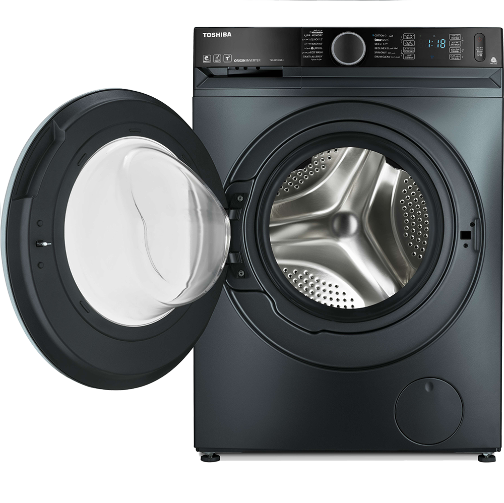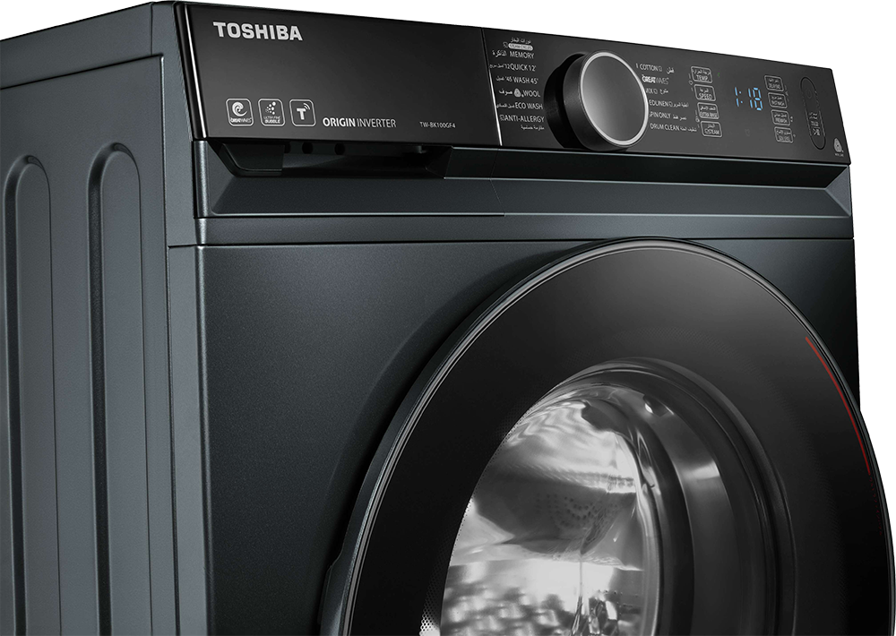 • Time-efficient and hassle-free, Toshiba’s front-loading washing machine allows you to complete small wash cycles in just 12 minutes.
