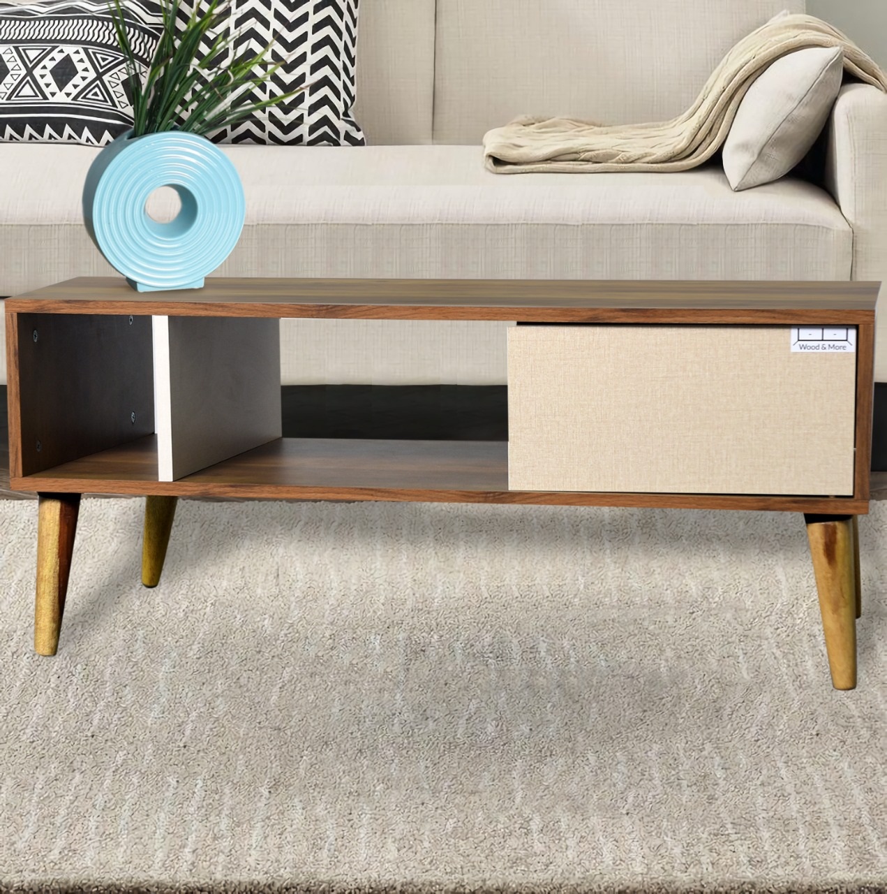 120 cm Coffee Table with 1 Door (Wood Legs) - 4132801051