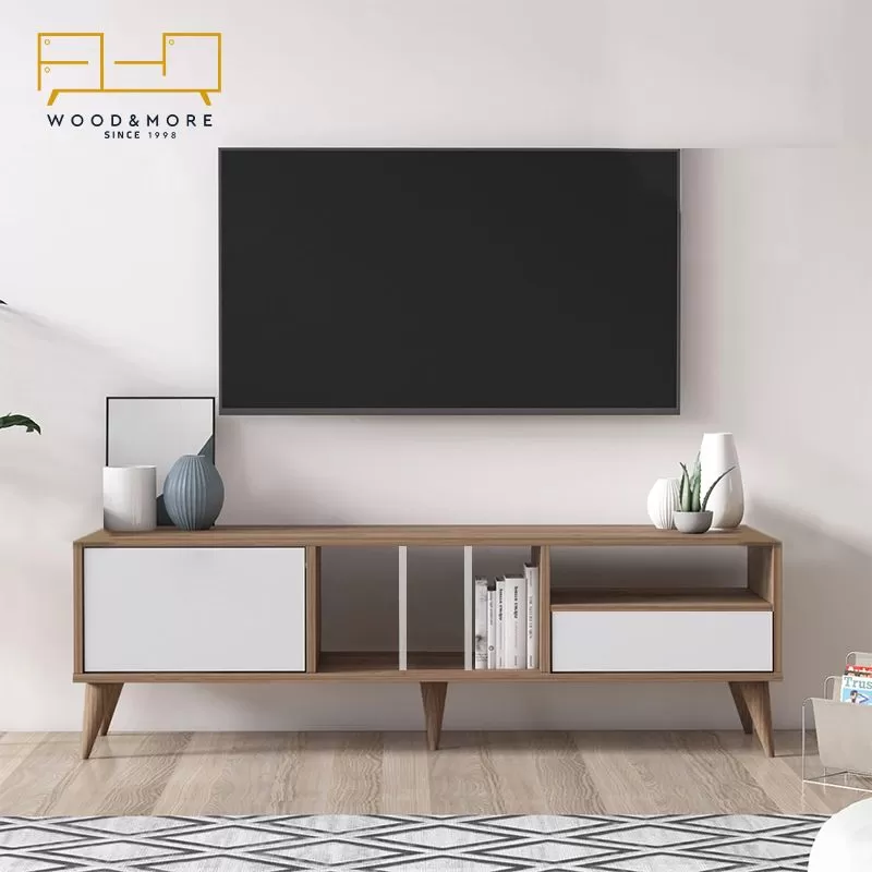 TV table 180 cm with 2 doors + 2 dividers - Size: Width: 160 cm, Depth: 35 cm, Height: 53 cm.