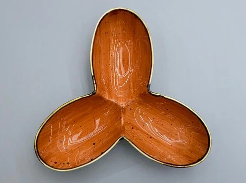 Serving porcelain plate Danny Home three sections with interlaced honey artistic colors and gilded edges Dimensions 22.5 × 4.5 cm CZT03-88