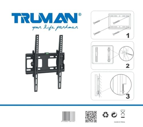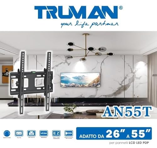 AN55T Truman Black TV Stand for 26-55 Inch Screens with Adjustable Arms
