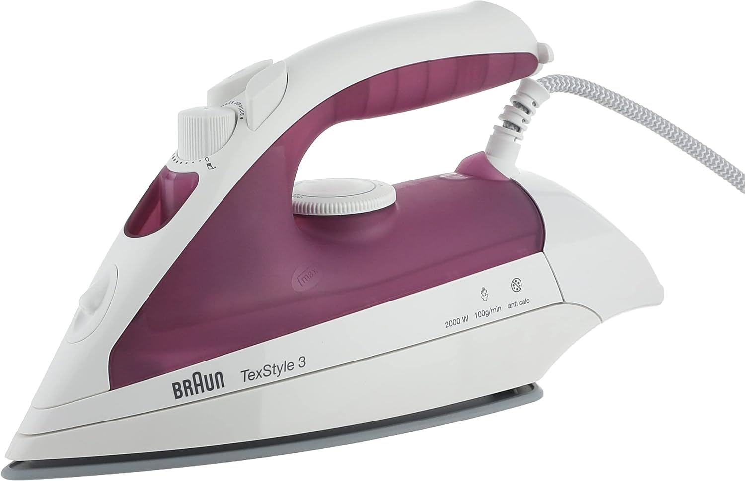 Braun 2000 Watts TexStyle 3 Steam Iron, White and Purple