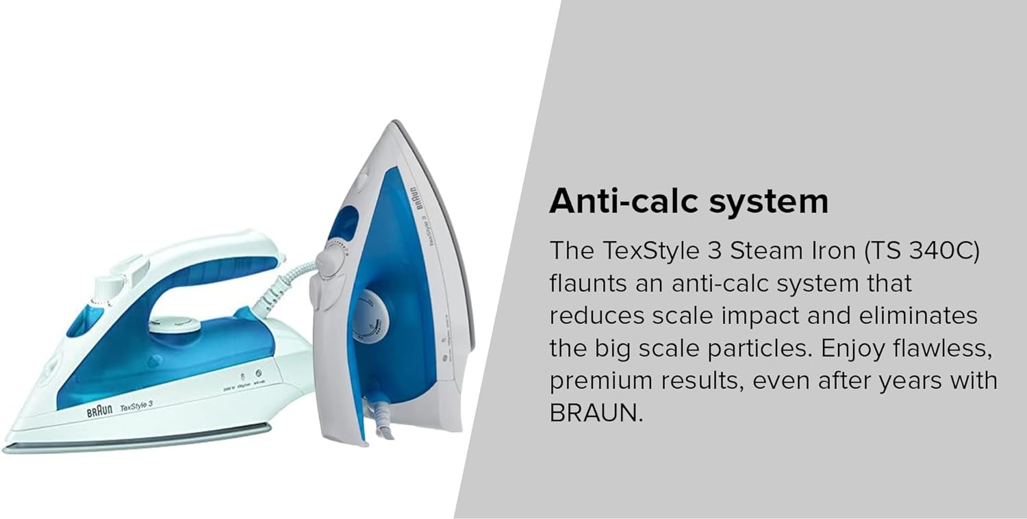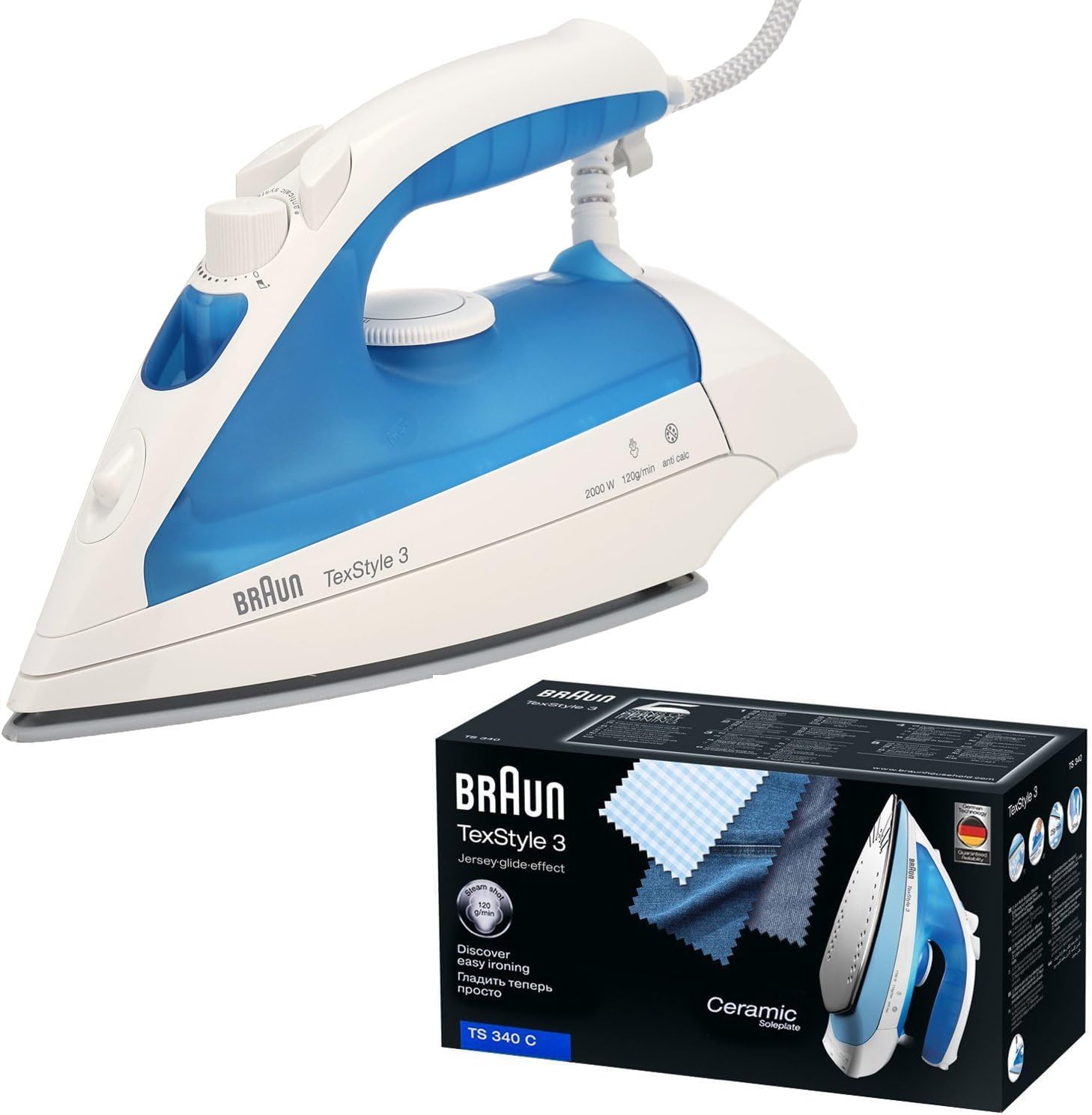Braun TexStyle 3 Steam Iron, 2000 Watt, White and Blue- TS340C