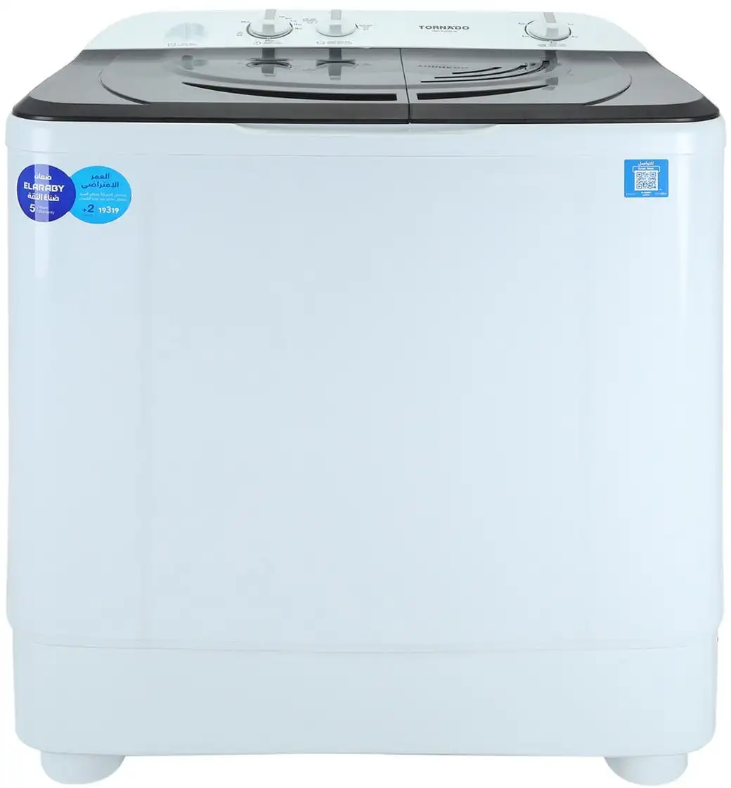 TORNADO Washing Machine Half‑Automatic Top Load 12 Kg with Pump , White * Black - TWH-Z12DNEP-W(BK)