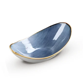 Single porcelain bowl Danny Home sea wave shape with artistic navy blue intertwined colors and gilded edges CZT05-86