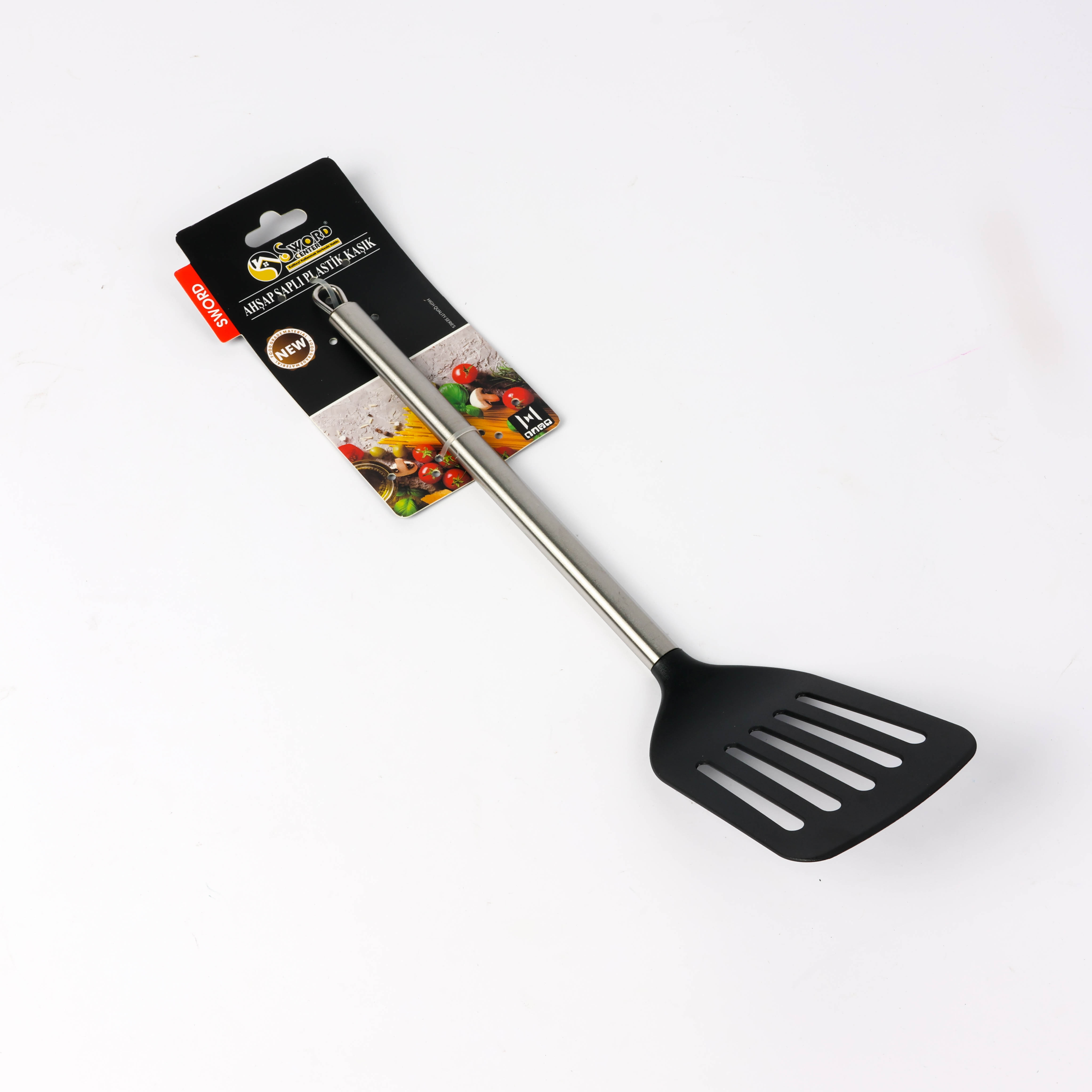 Wellmes Flat Slotted Frying Spatula – Silicone with Stainless Steel Handle