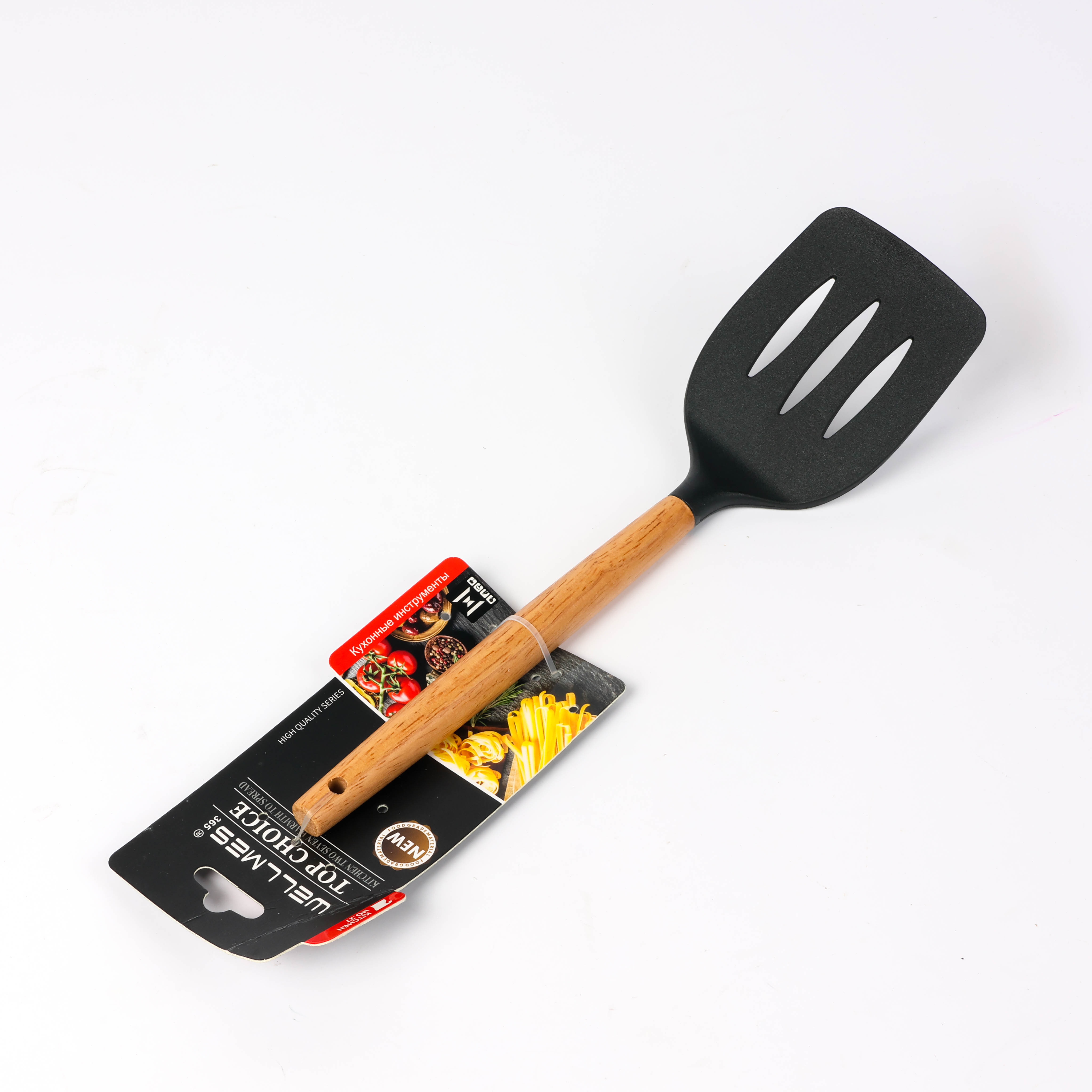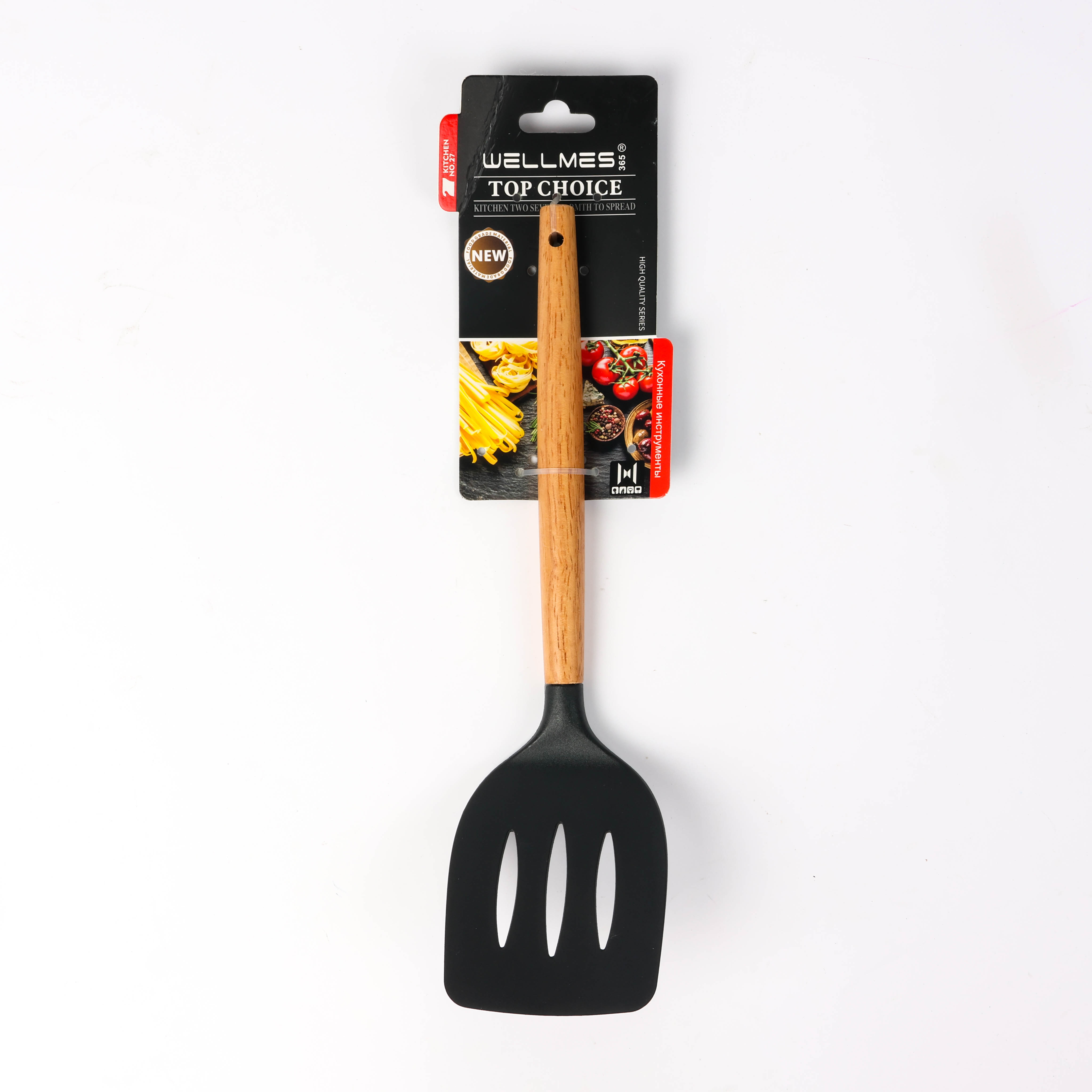 Wellmes Silicone Ladle with Wooden Handle – Ideal for Stirring and Serving