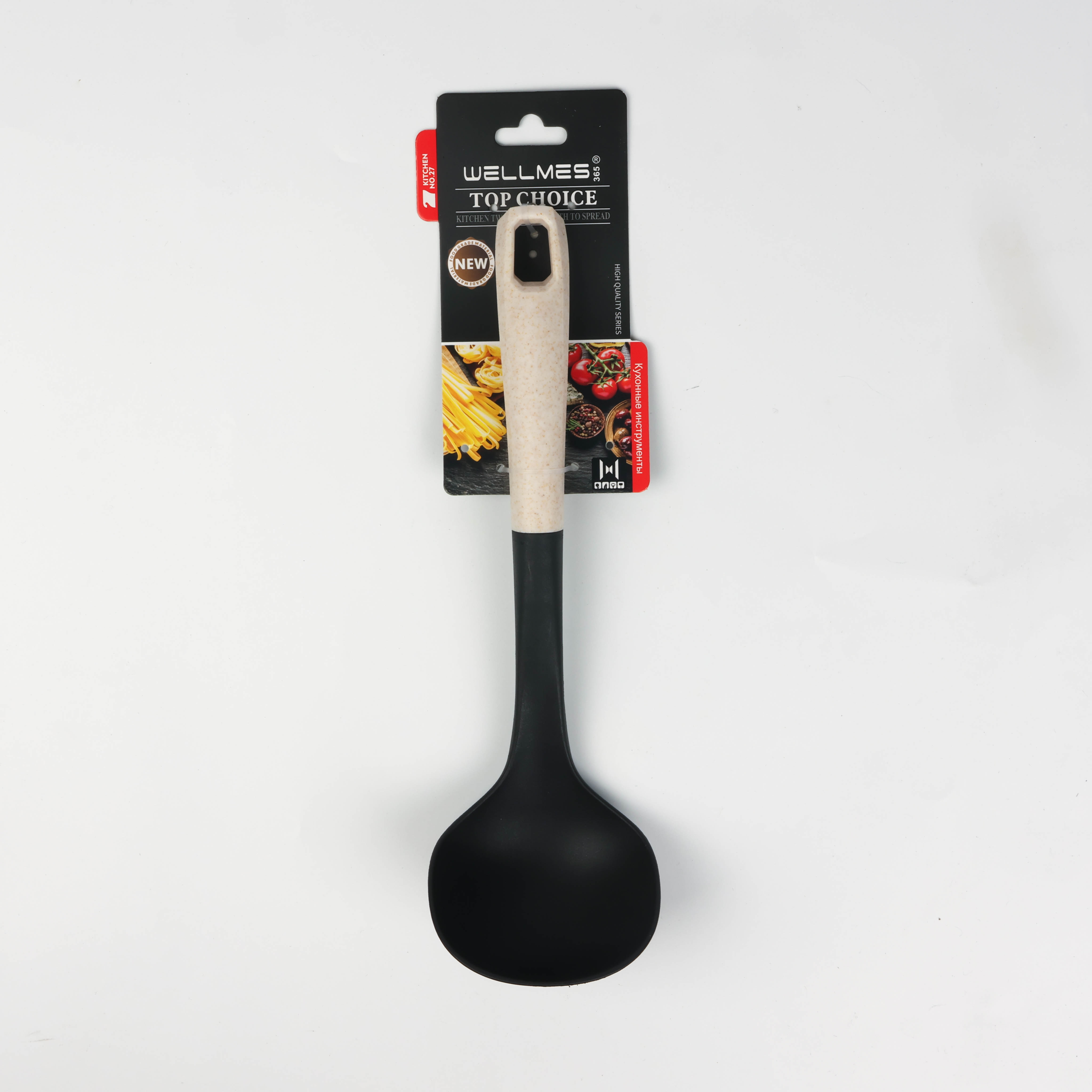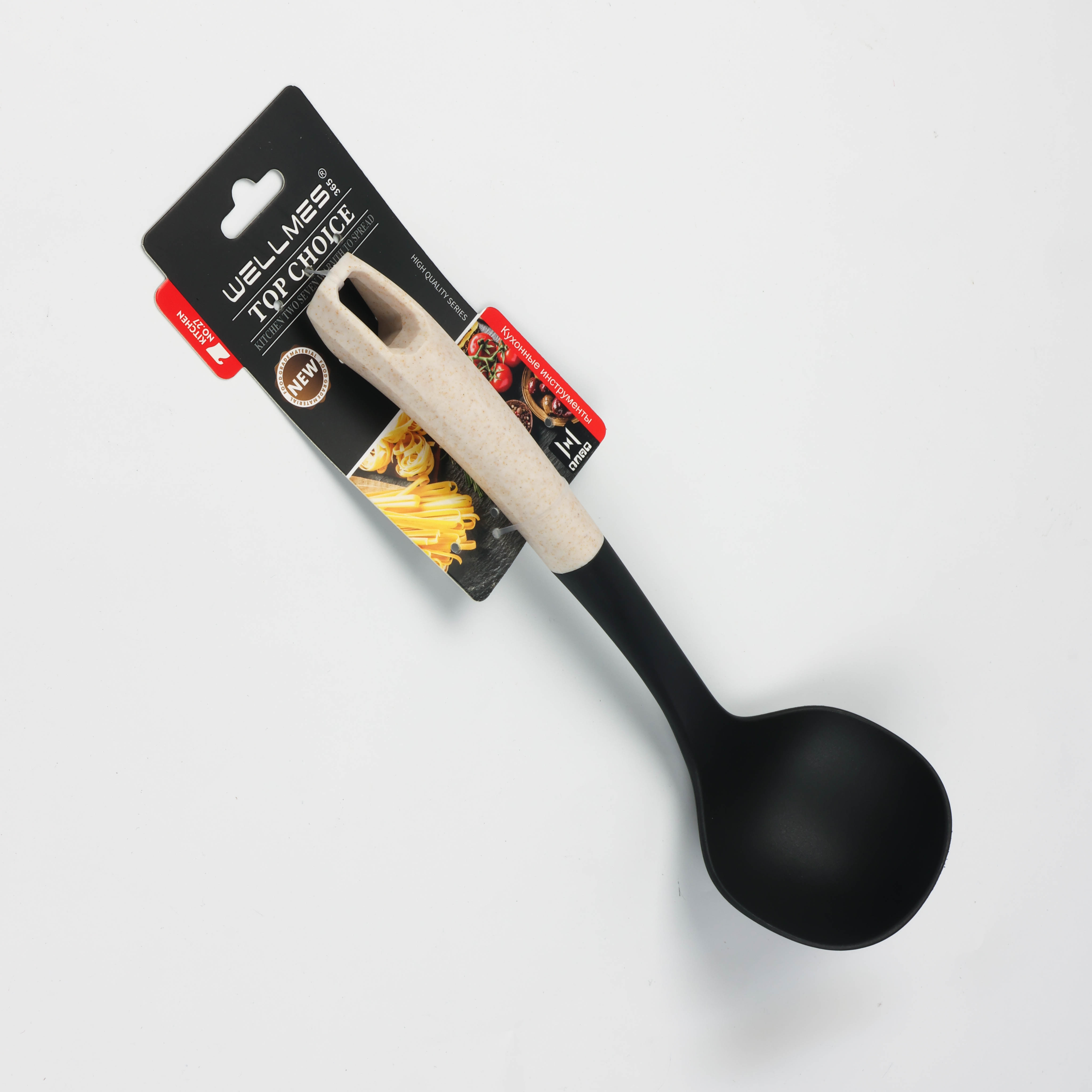 Wellmes Silicone Soup Ladle with Beige Plastic Handle