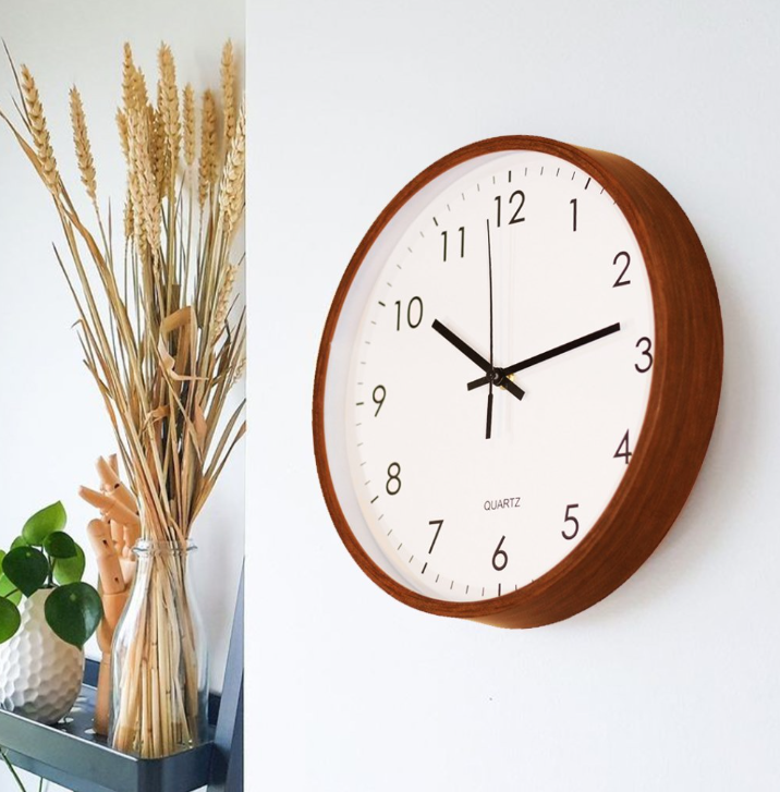 Wooden Wall Clock, Modern Battery Operated Wall Clock for Office, School or Home