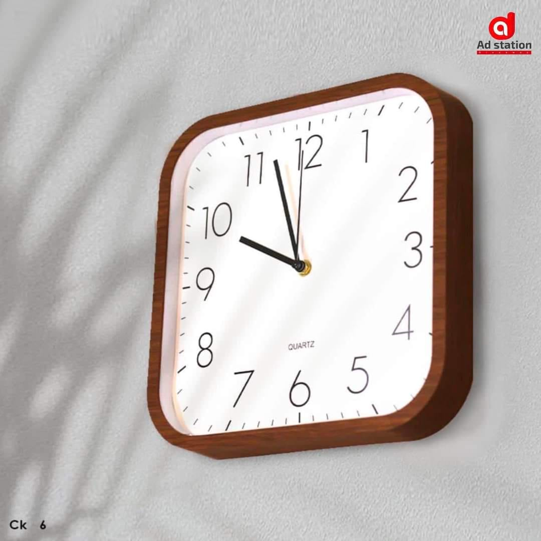 Brown Rectangle Wall Clock with Silver Hands Silent Non-Ticking Battery Operated Quartz Round Clock for Living Room Bedroom Home Office School Décor