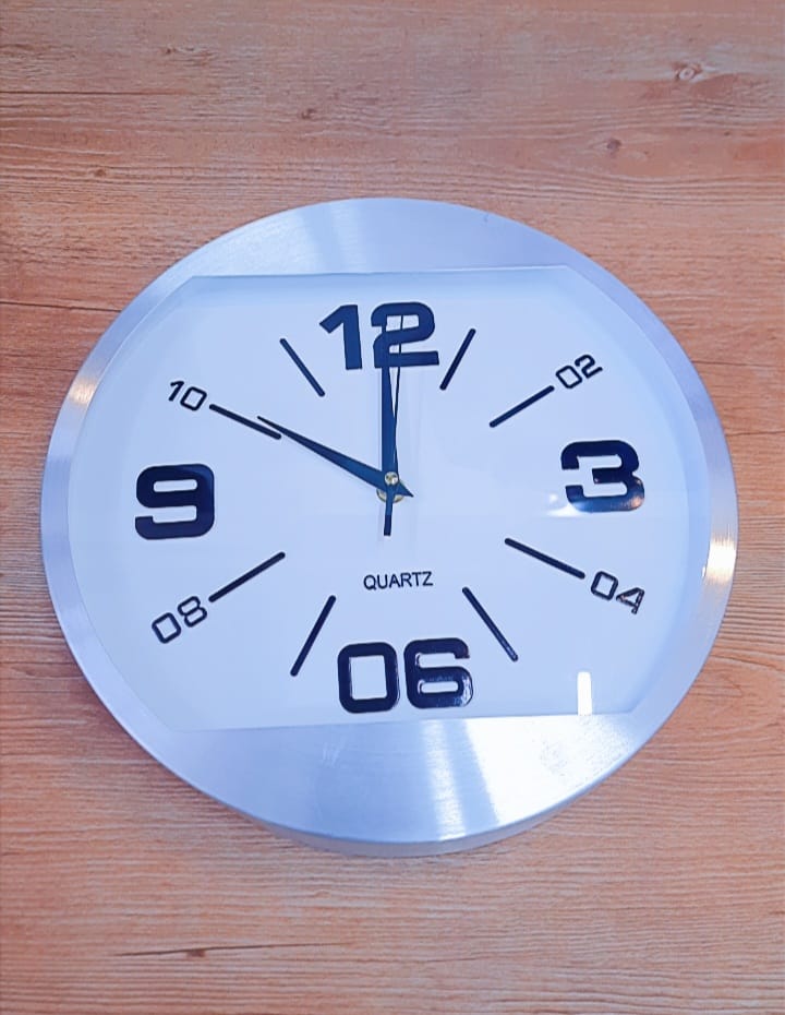 Silver Round Wall Clock with Silver Hands with Black Background Silent Non Ticking Battery Operated Quartz Round Clock for Living Room Bedroom Home Office School Decor