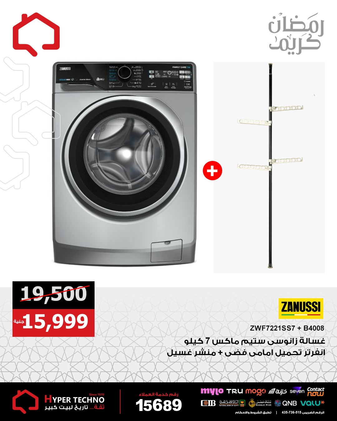 Zanussi Front Load Washing Machine SteamMax, 7Kg, Inverter, Silver – ZWF7221SS7 9456