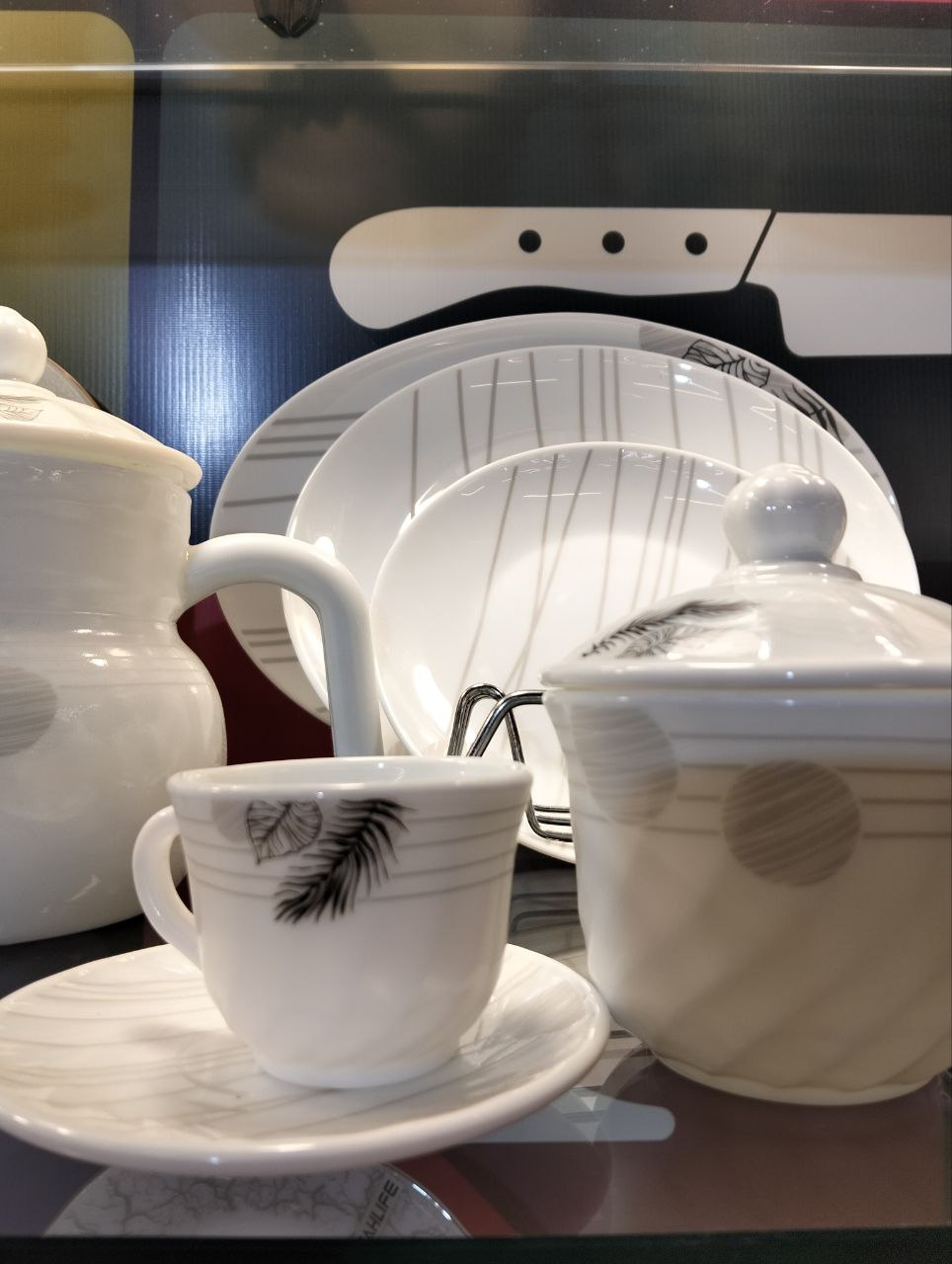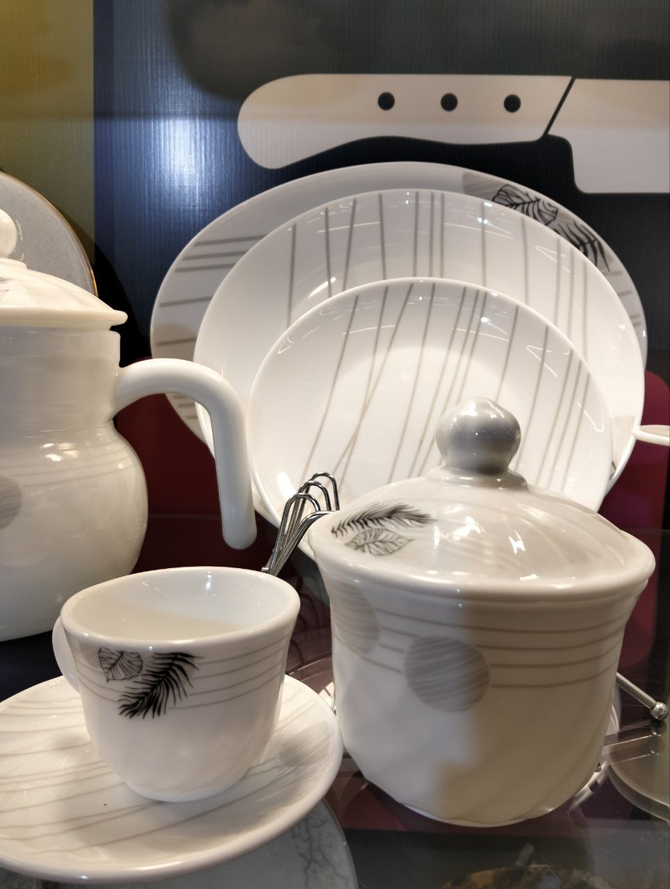Arcopal set 60 pcs with a modern design blending soft lines and refined leaf patterns.