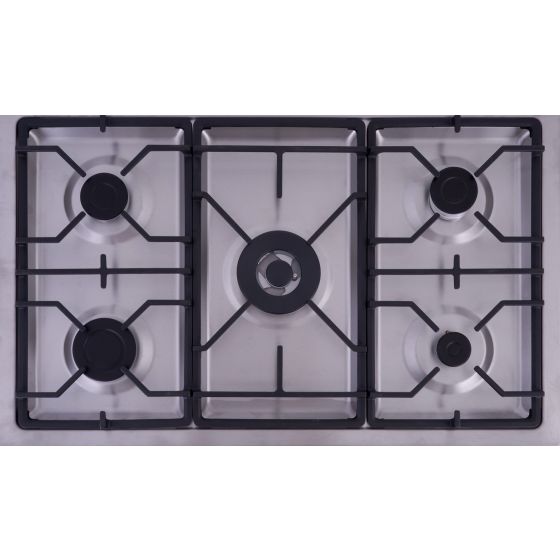 Ariston Gas Cooker, 90 cm 5 Burners, Cast Iron Pan Supports, Fully Safe, Stainless Steel - ARR9GGF23125XNA