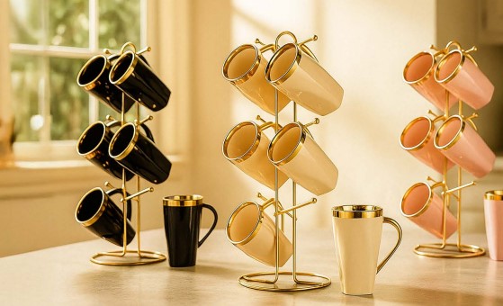 Coffee Mug Set 1047 Domino Stand 6 Pieces 2047