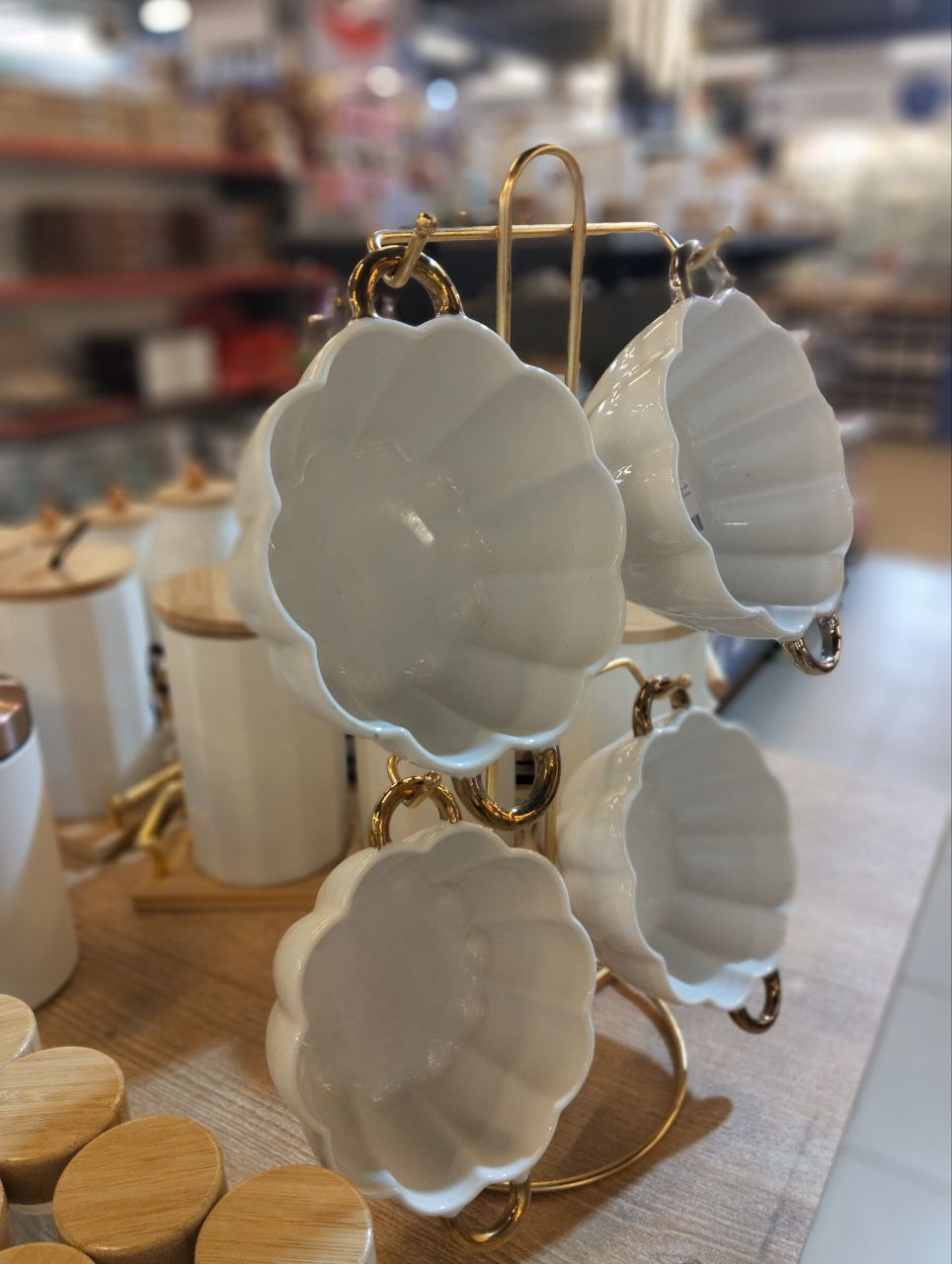 Dream Lotus Soup Mug Set 7 pcs – Crystal Stand Gold 2042