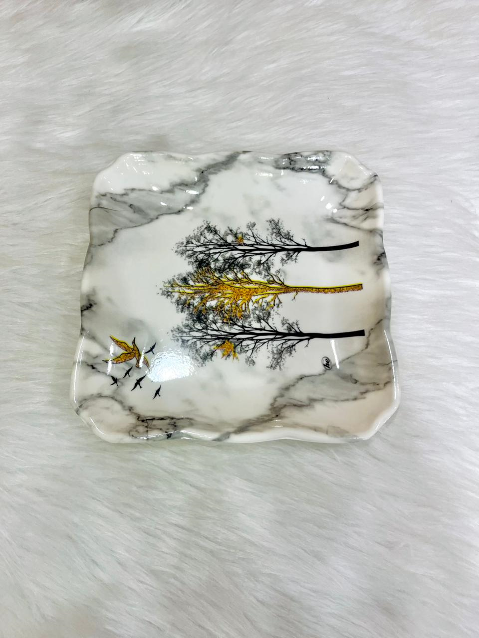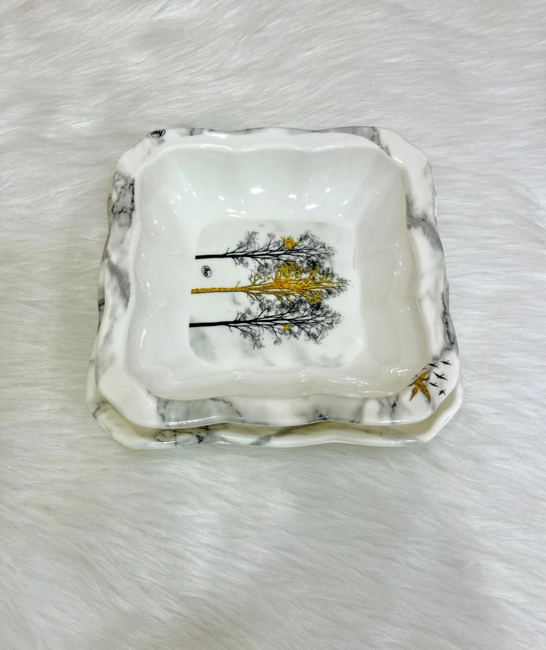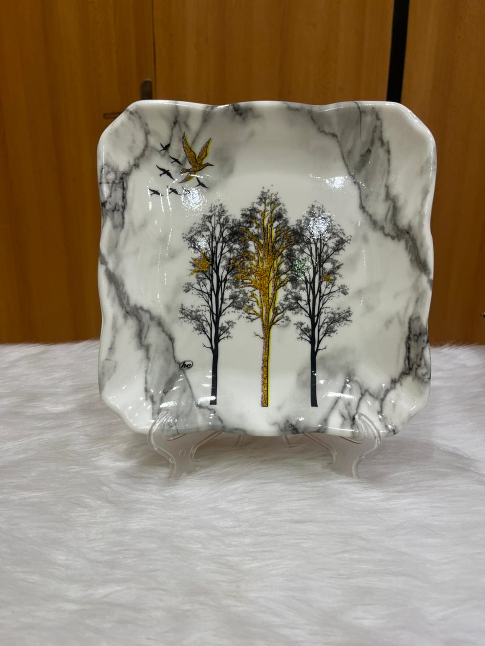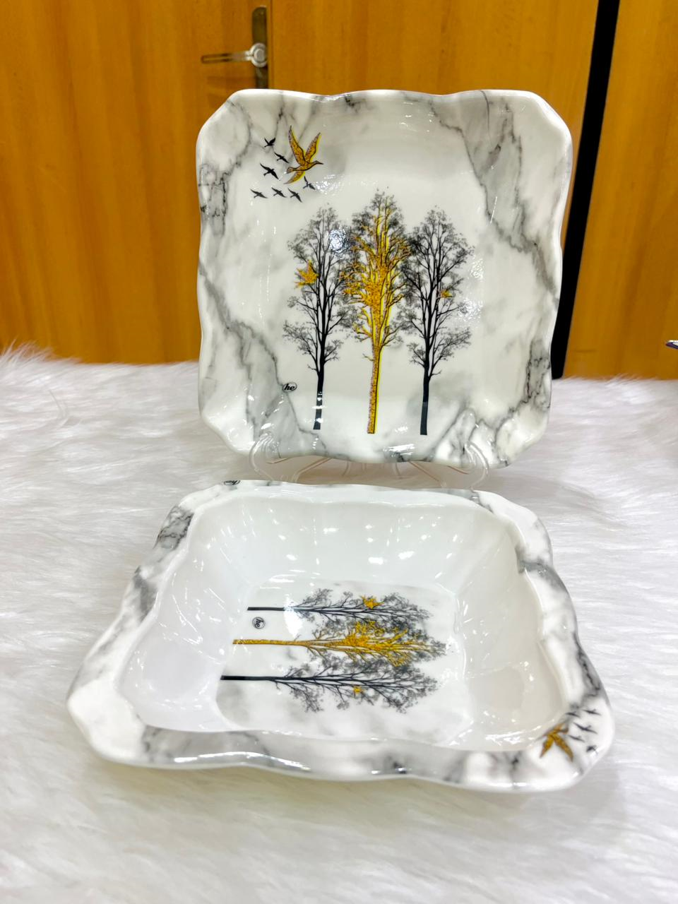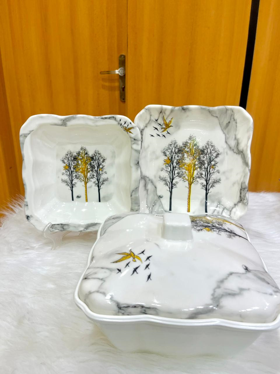 Melamine dinner set, 38 pieces, featuring an elegant trees and birds design.
