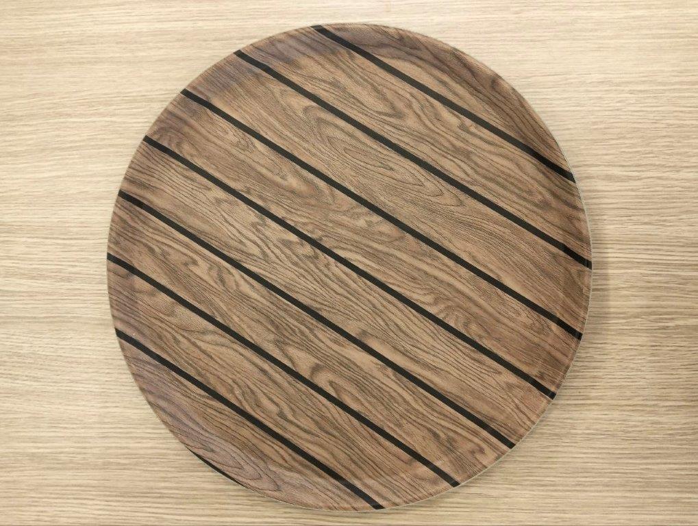Round Wooden Tray with Stripes 40 cm – Wide surface, modern design, high durability