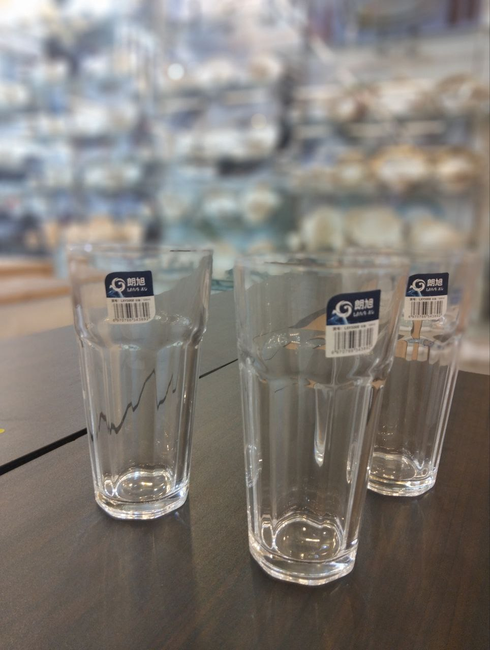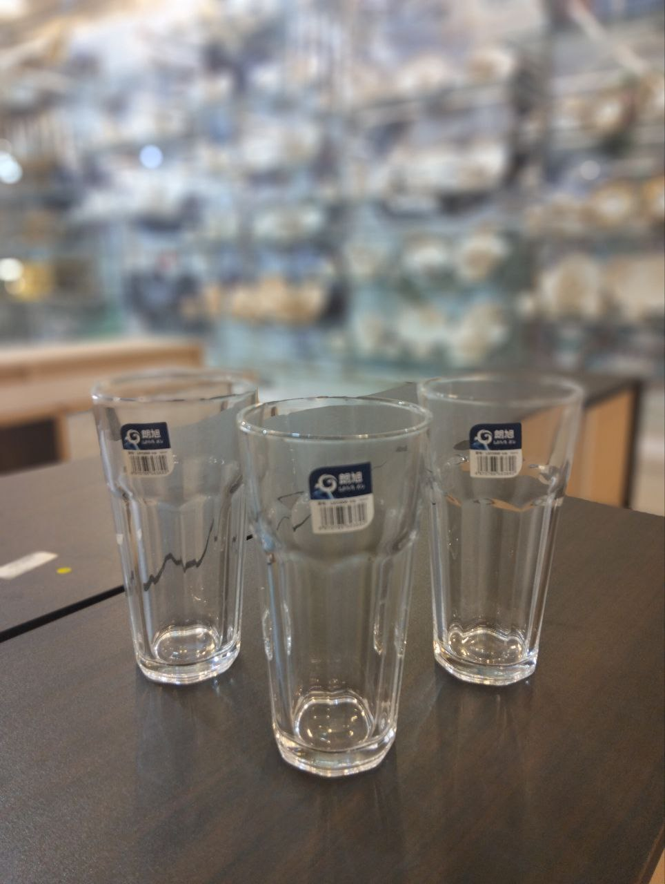 Living Home 6-piece transparent glass mug set with an elegant multi-faceted design and thick base