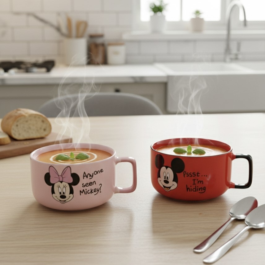 Soup Mug Set,Porcelain 2 Pieces, with Handle, Mickey & Minnie Designs - abdo - J - 22